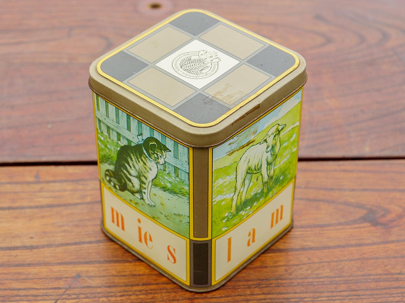【Vintage】オランダ 単語学習ボードモチーフ TIN缶 キャット/f184B
