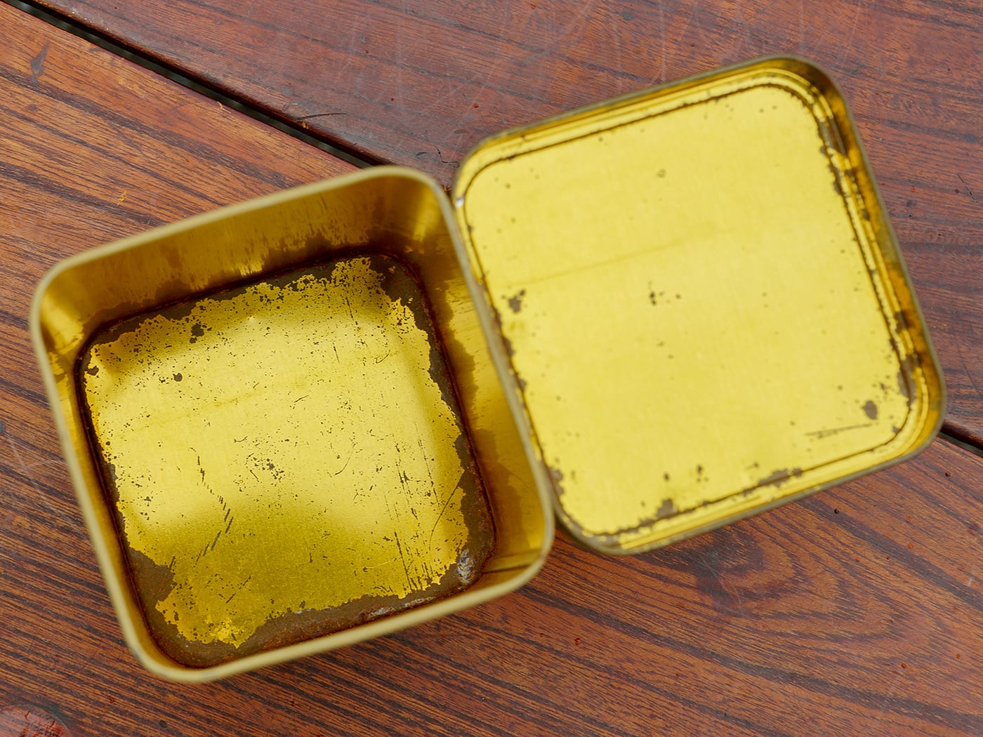 スレや錆、傷、色ヤケ、汚れがありますが素敵なビンテージコンディションに仕上がっています。蓋の蝶番もうまく機能しています。