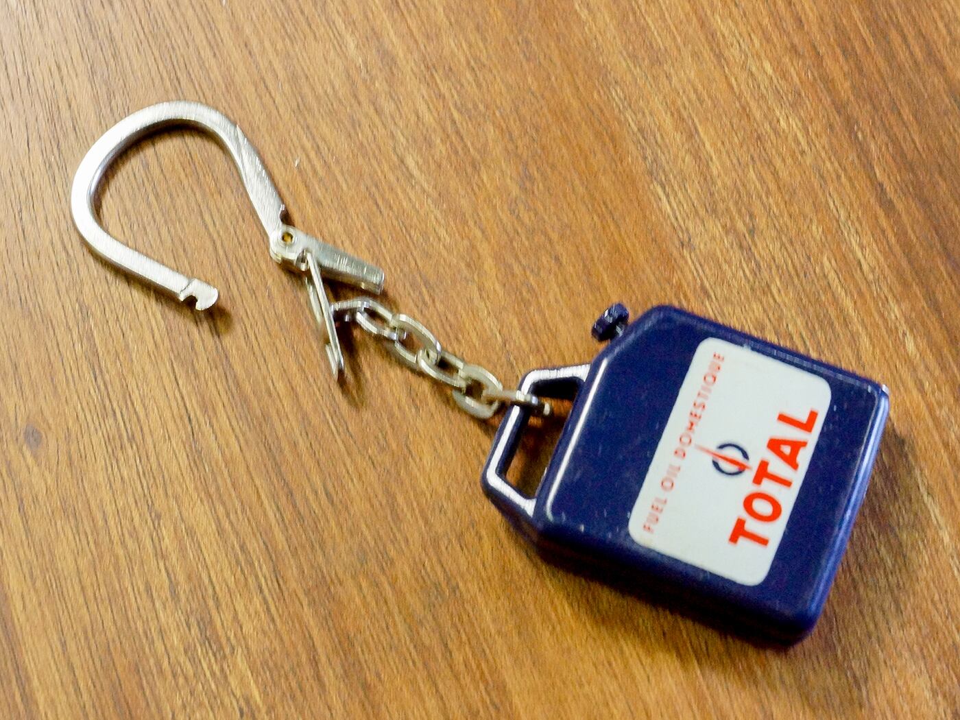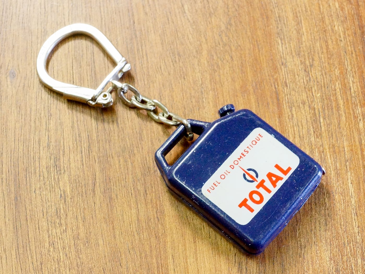 フランスのオイルブランドTOTAL/トタルのオイルボトルタイプのキーホルダー。