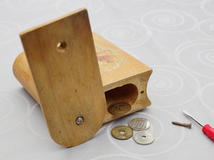 後ろ側の小さいネジを外して底部を回転することでコインの取り出しが可能。
