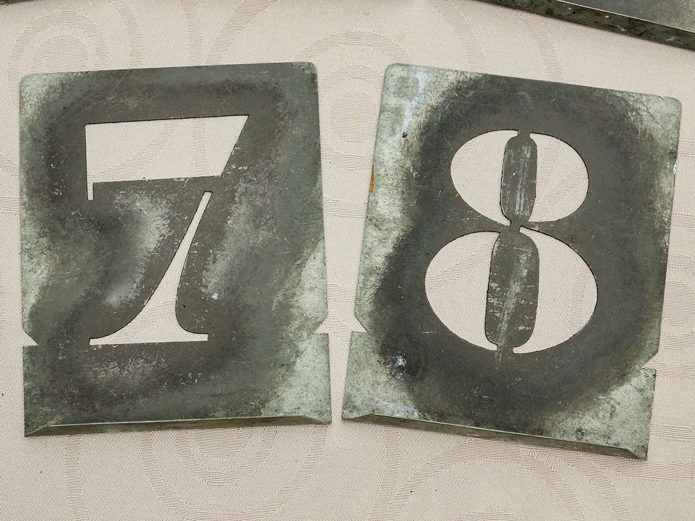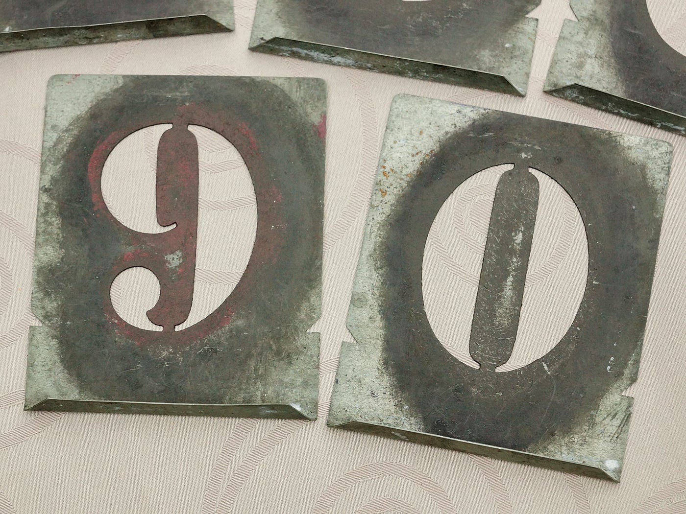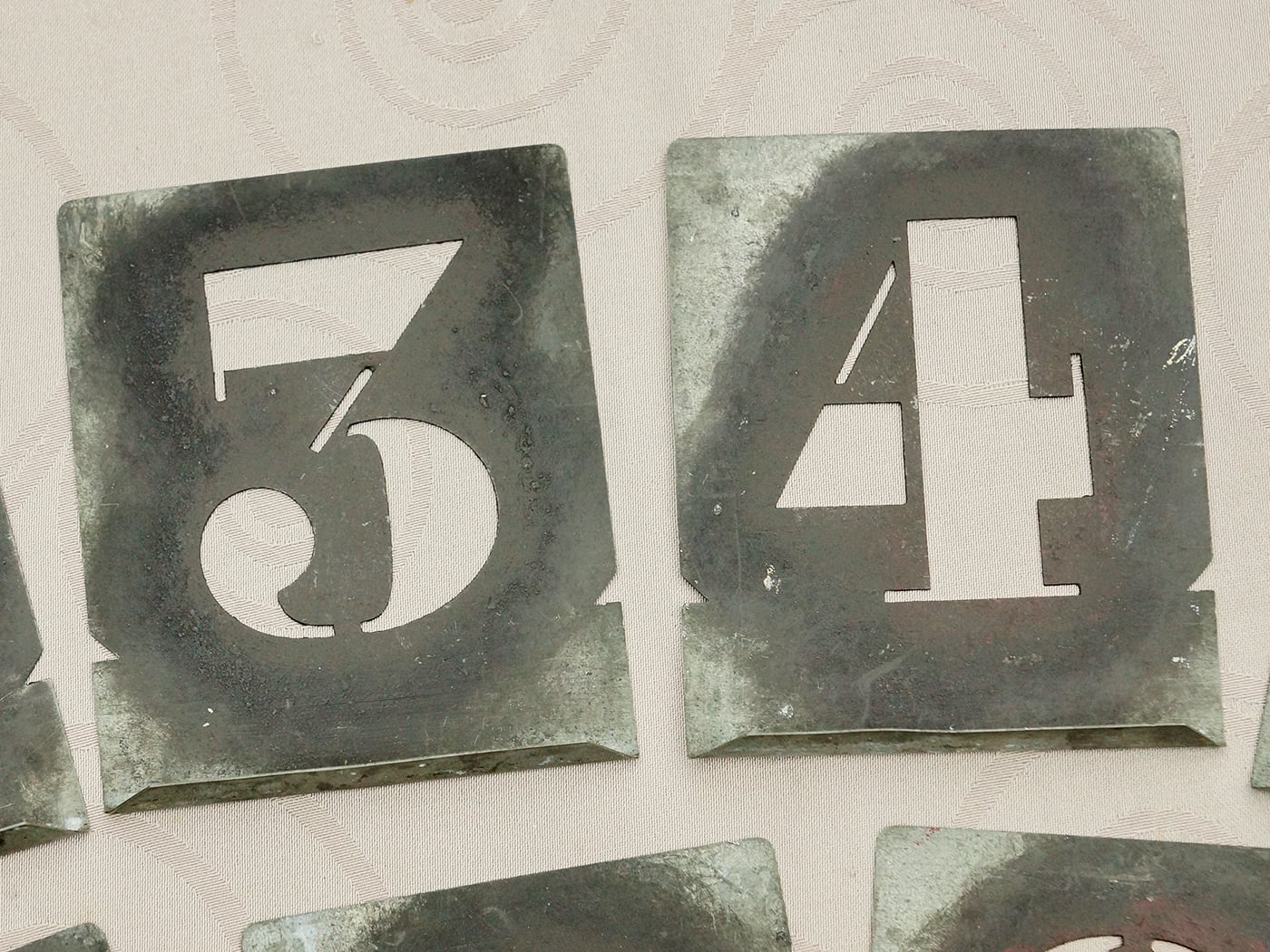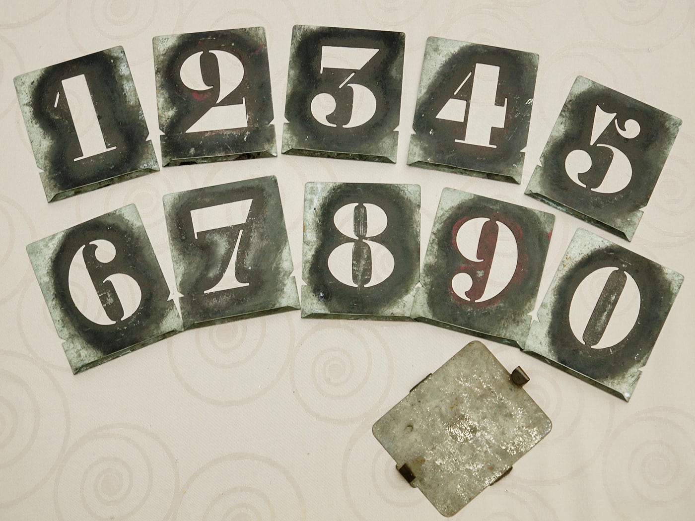 フランスより到着。メタル製のナンバーステンシルプレートセット。
