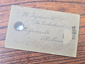 オランダ中南部の都市、ズヴェインドレヒトの住所の記入があります。手書きの丁寧で素敵な筆記体が物語を感じます。