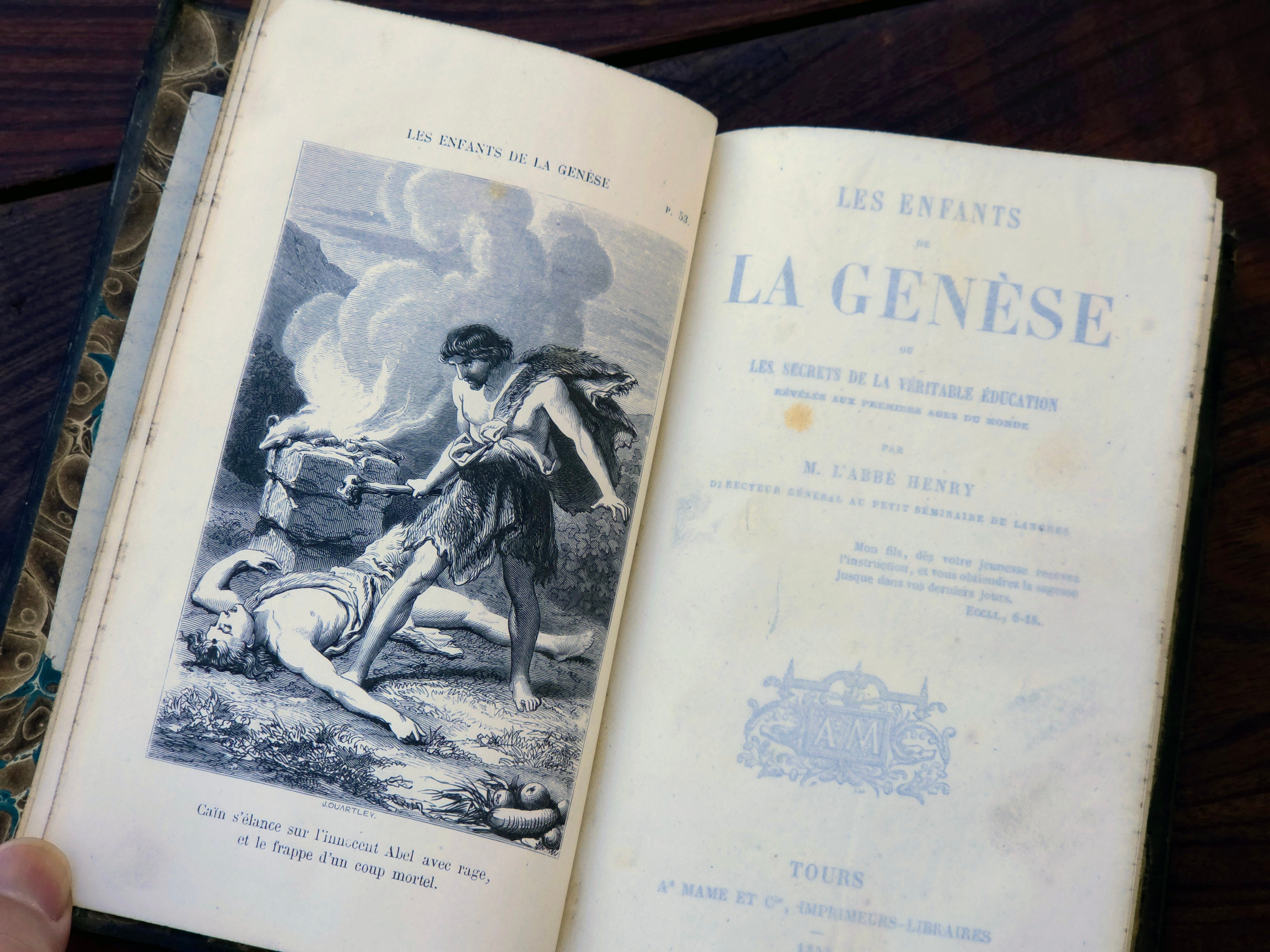 【Antique】フランス 1855年 書籍 ”創世記の子供たち” /d028
