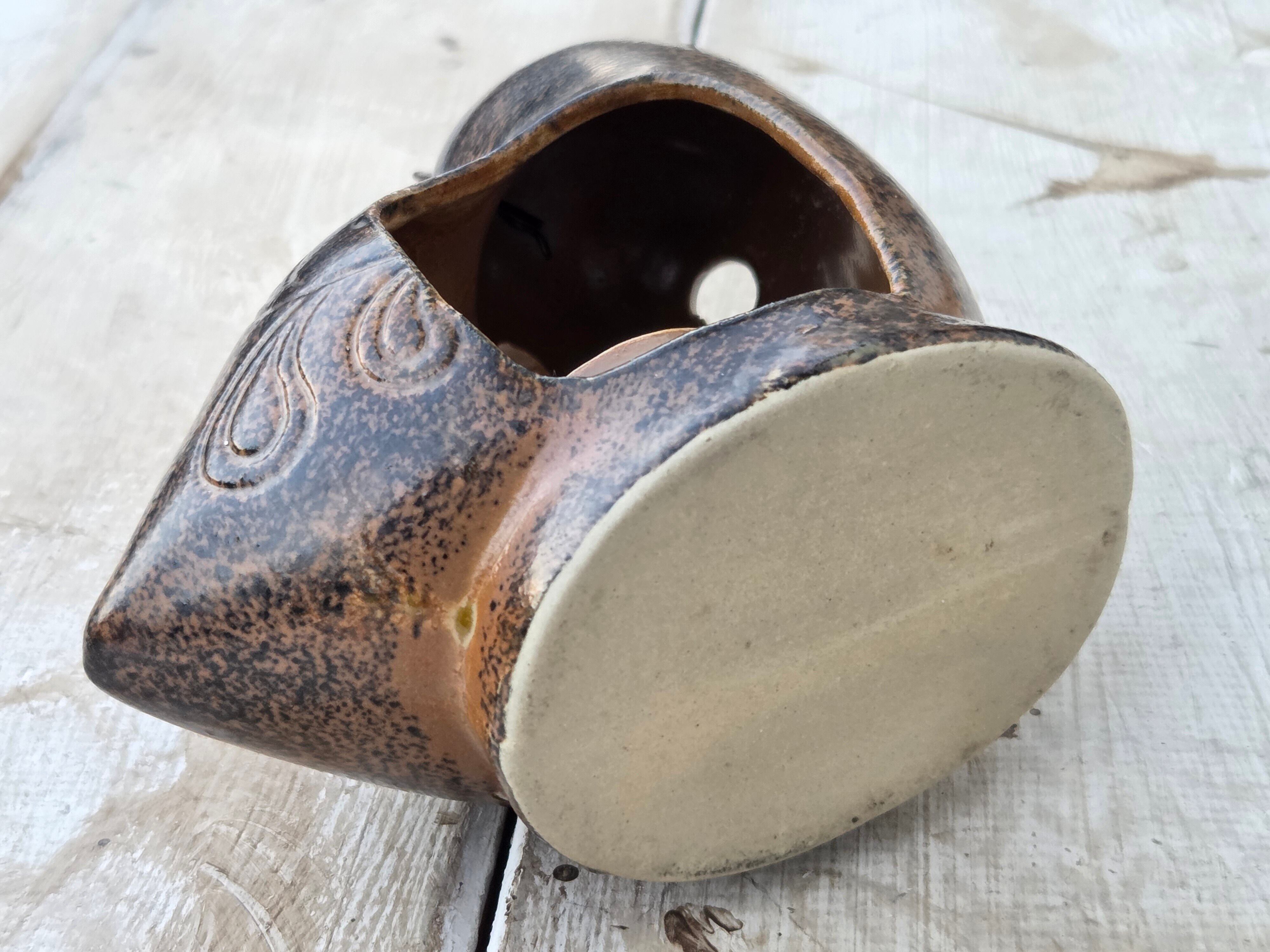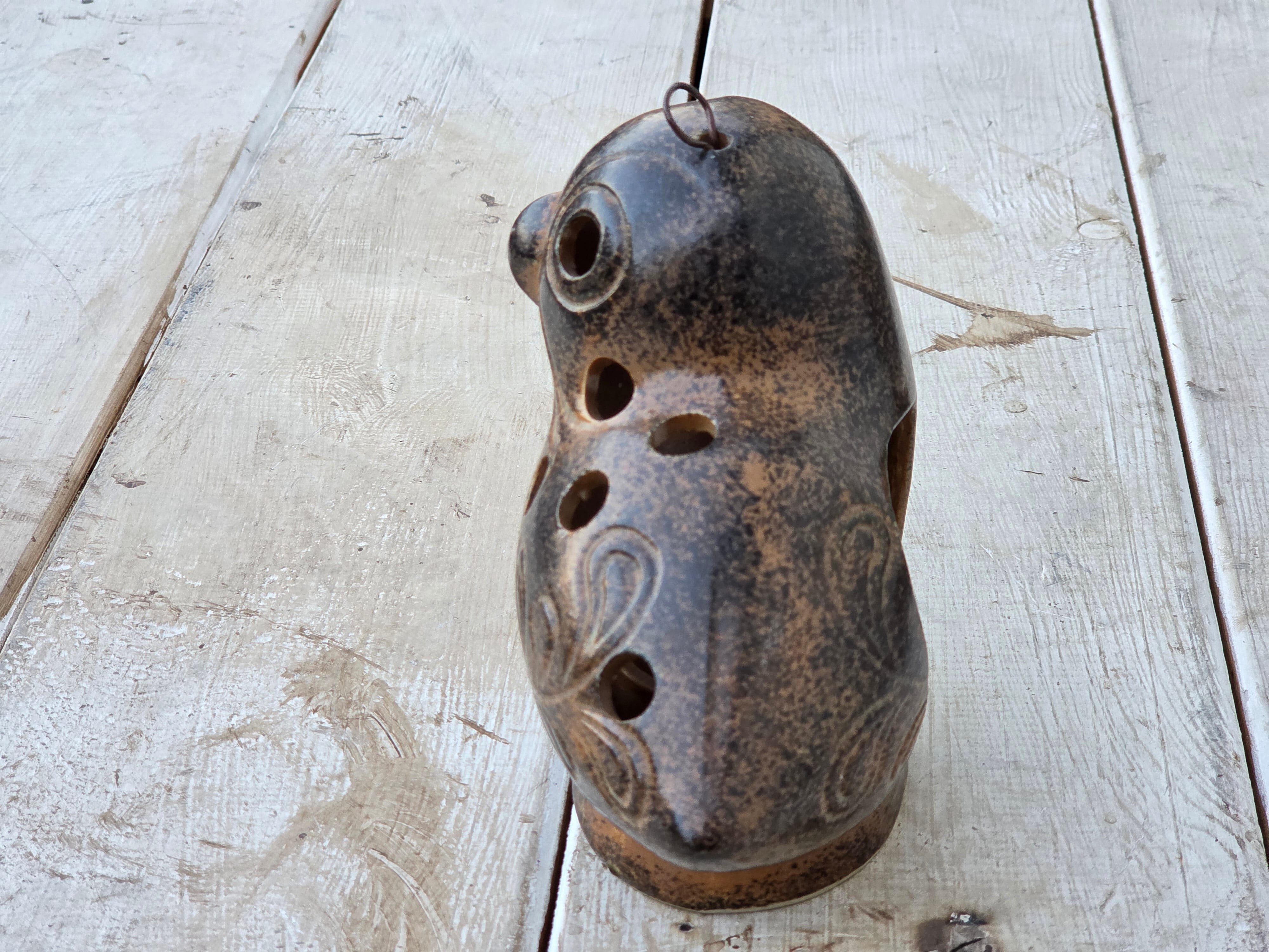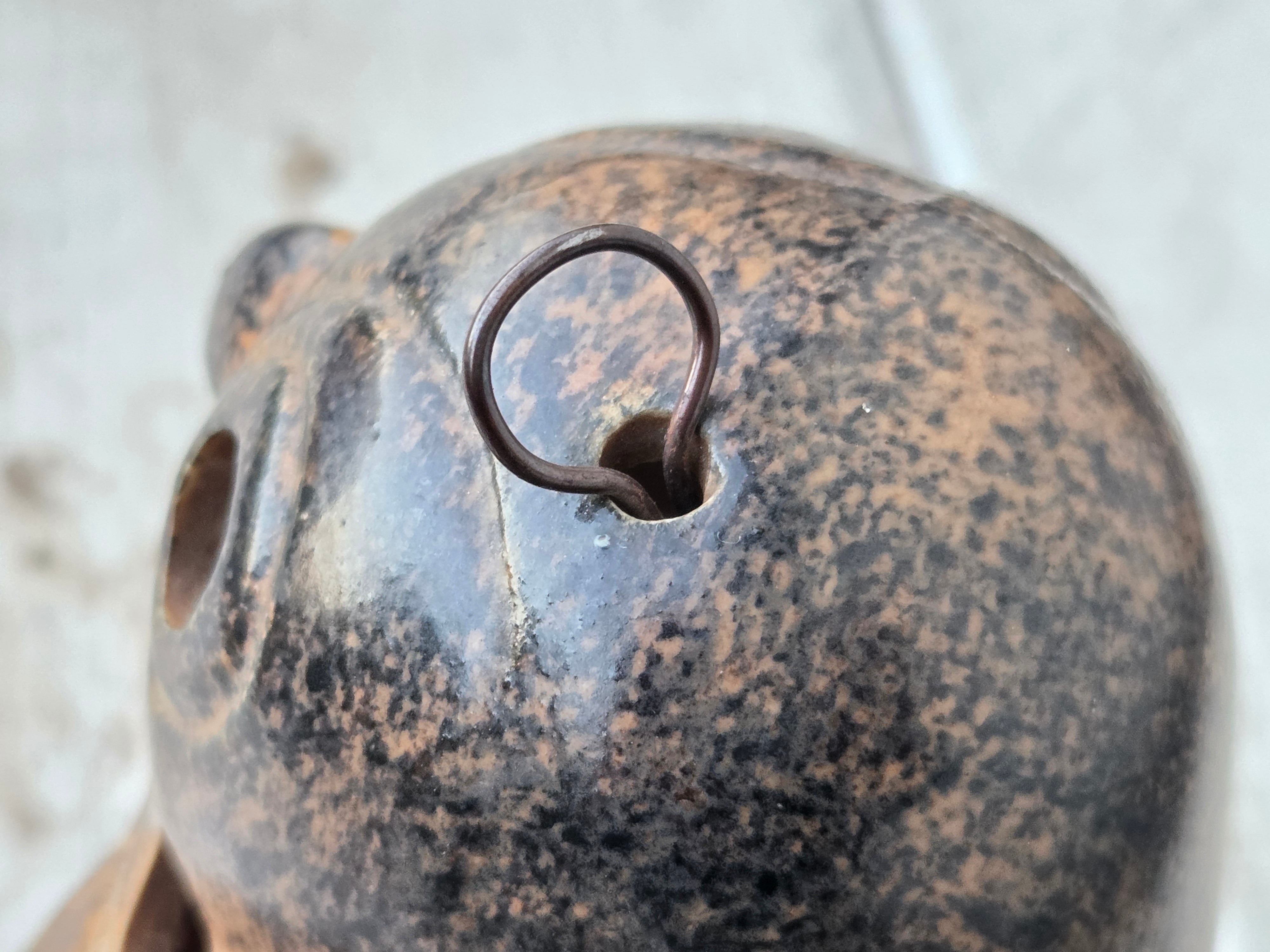 陶器製でしっかりした造りです。フックリングも付いていますので掛けても使えます。