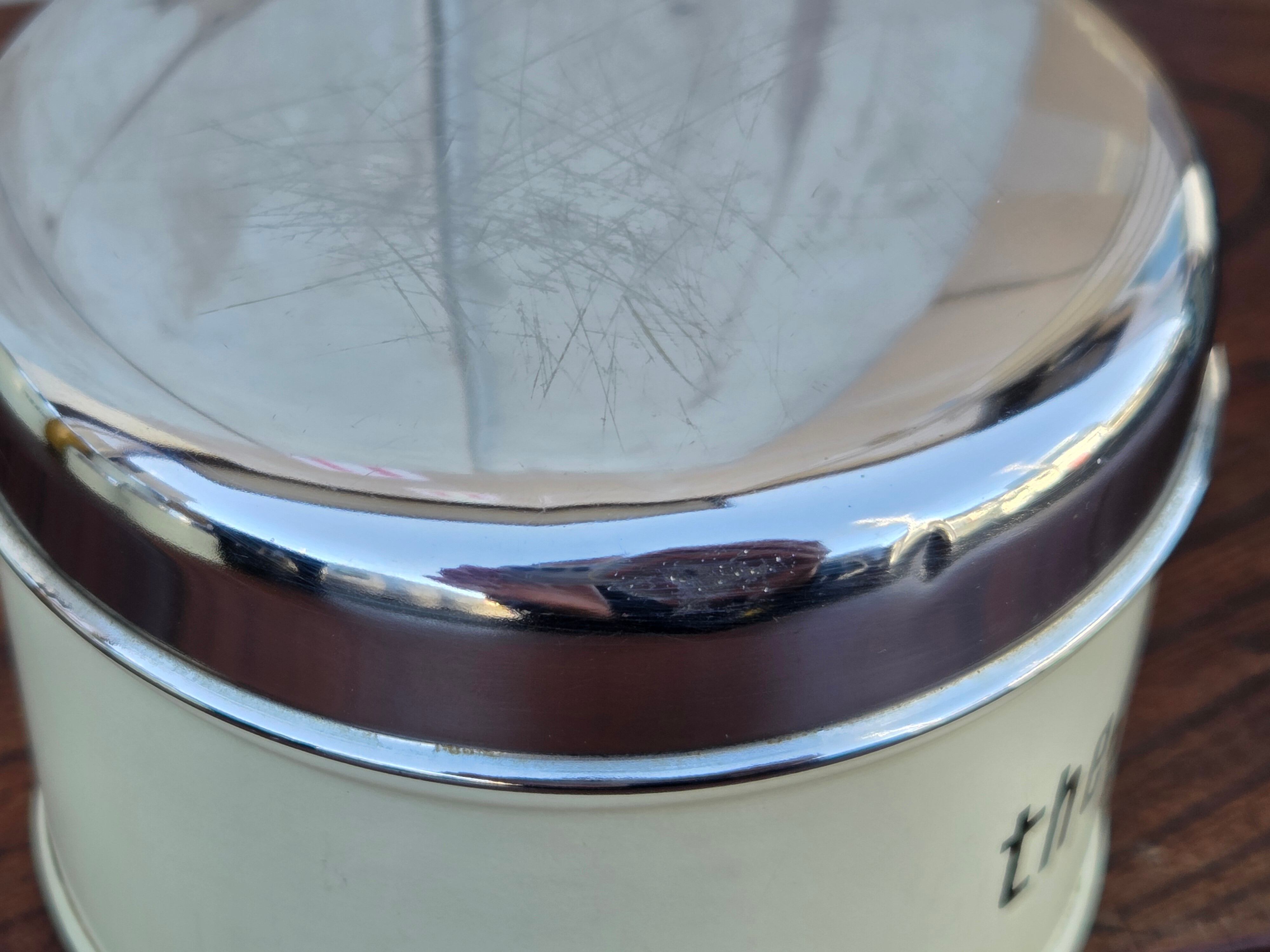 小錆、傷、汚れ、小えくぼ、塗装剥がれがありますが全体的には良好なビンテージコンディションです。フタの上面にスリ傷があります。