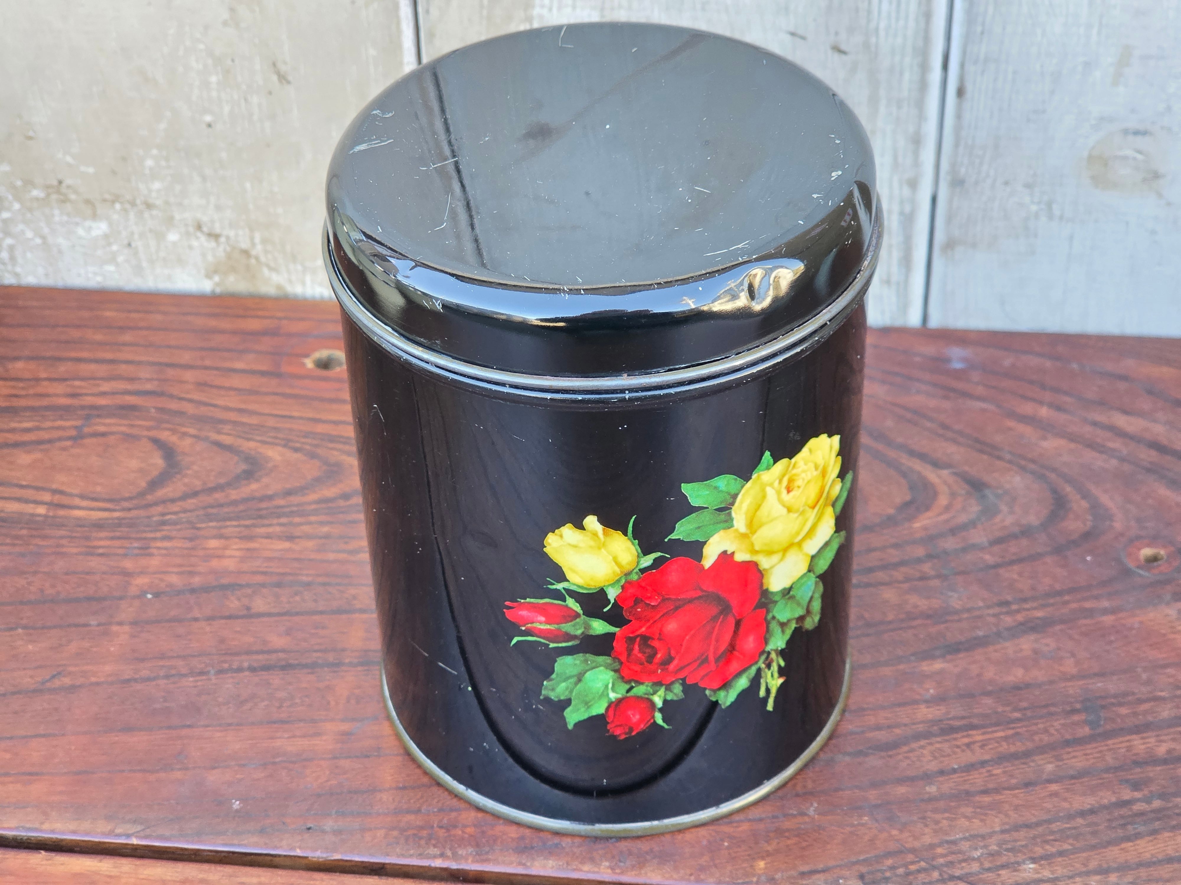 【Vintage】デンマーク IRAスチールキャニスター ローズ ブラック /f212