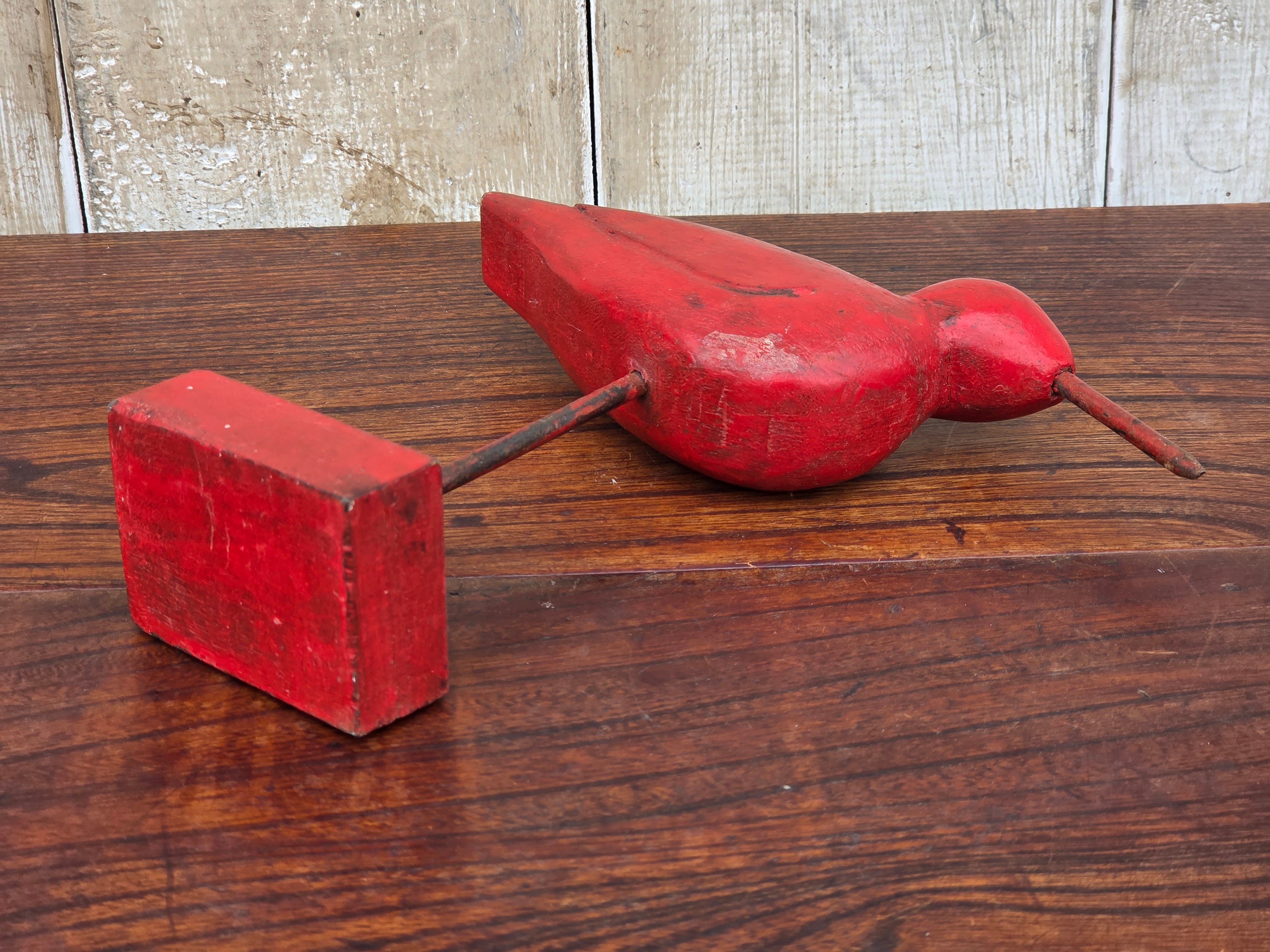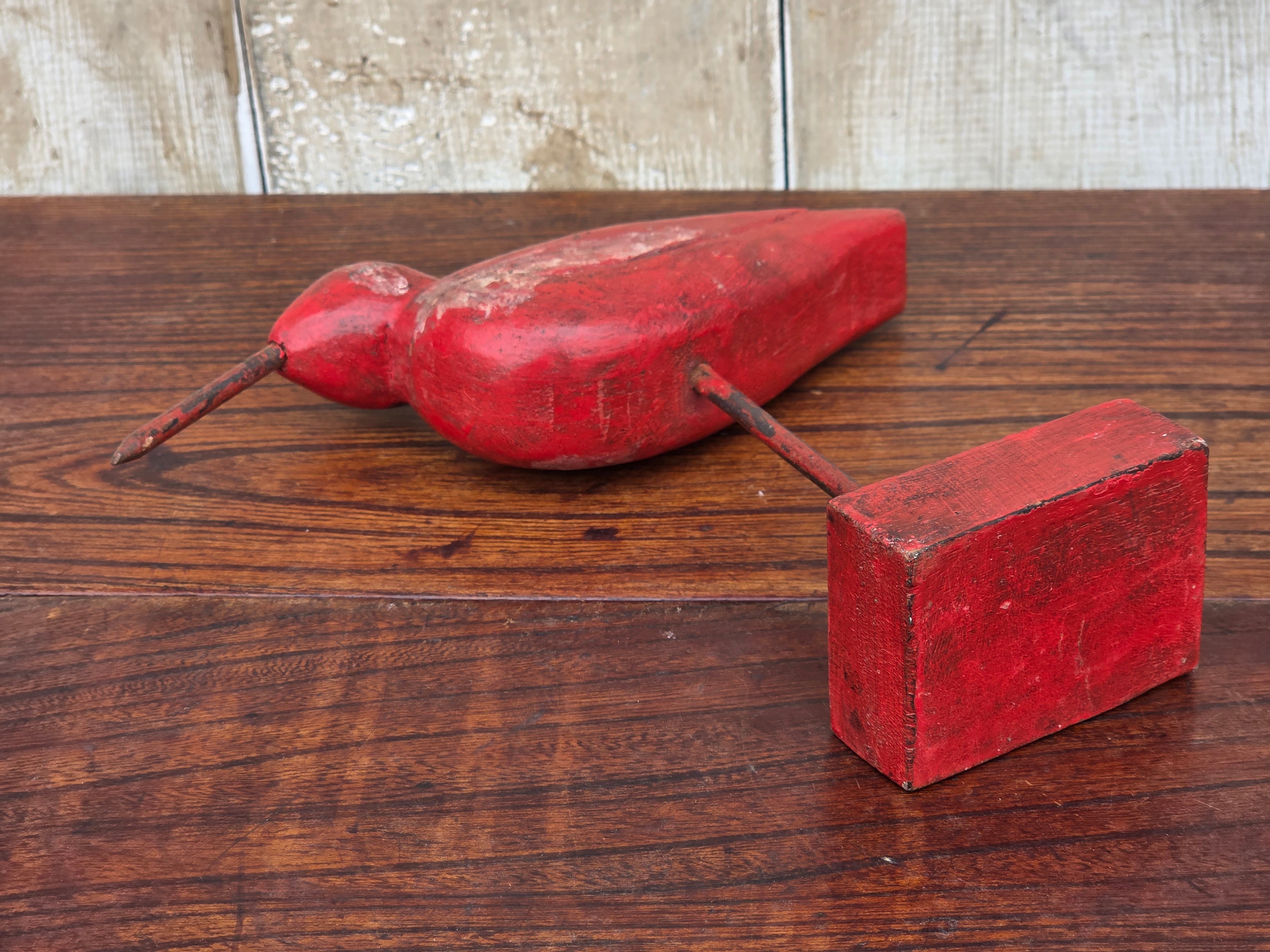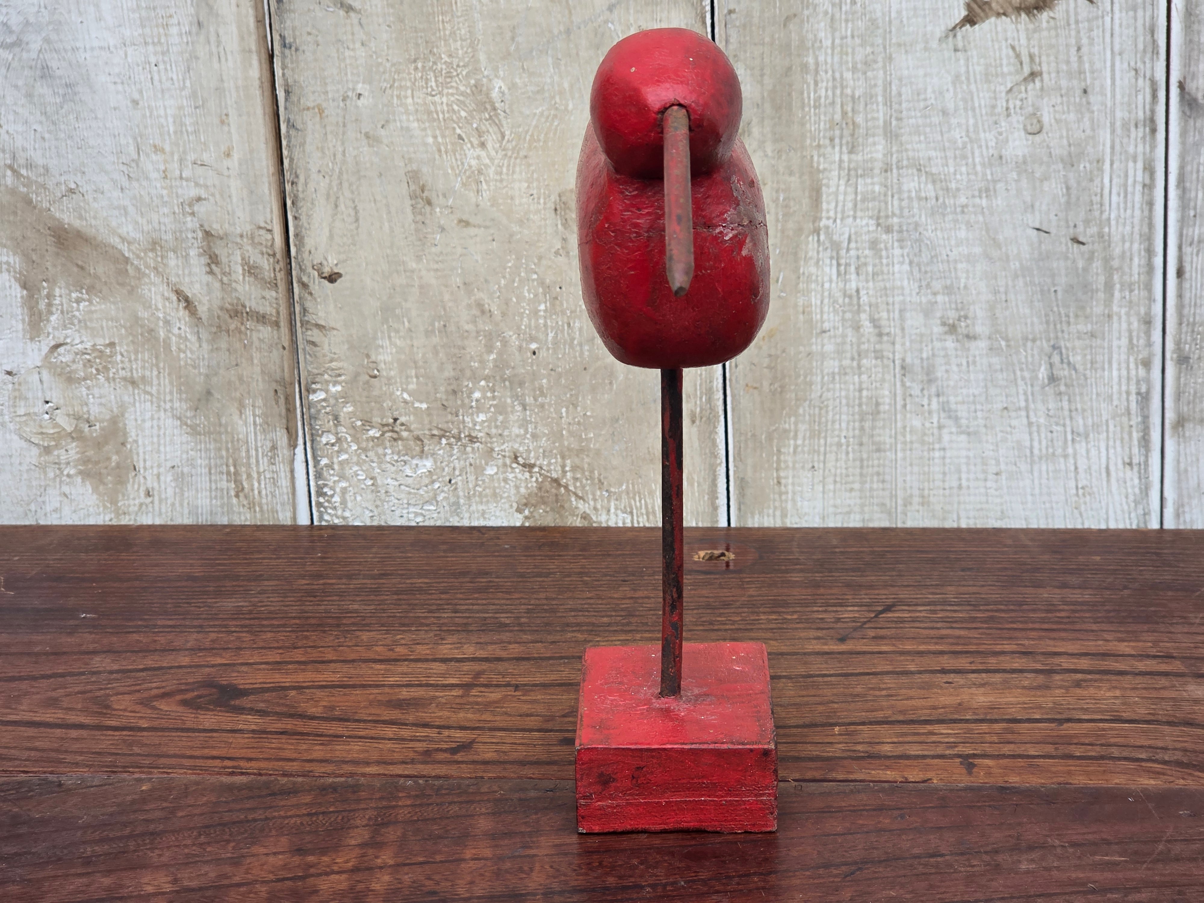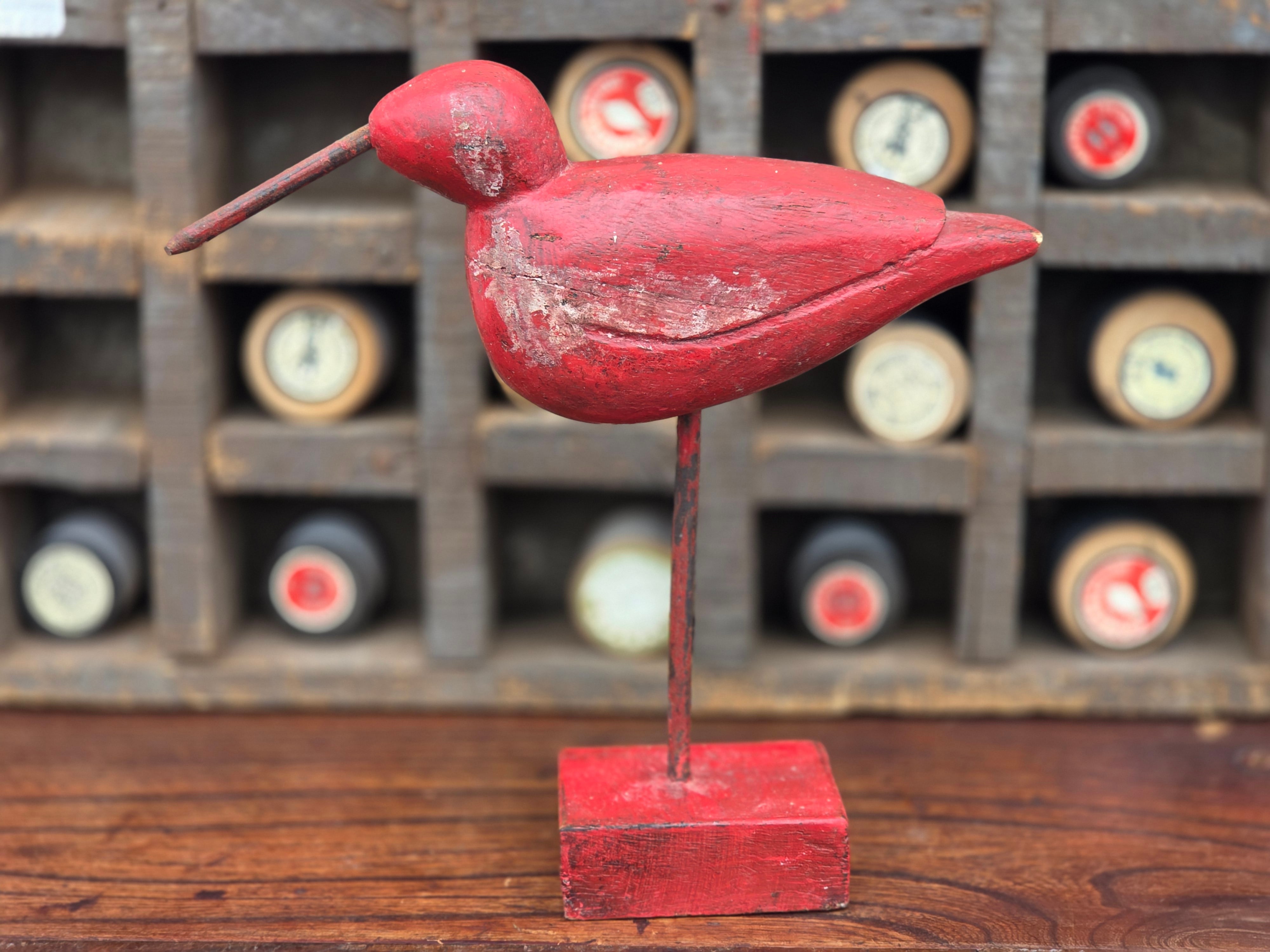 【Vintage】フランス 赤い鳥の木製オブジェ /d43