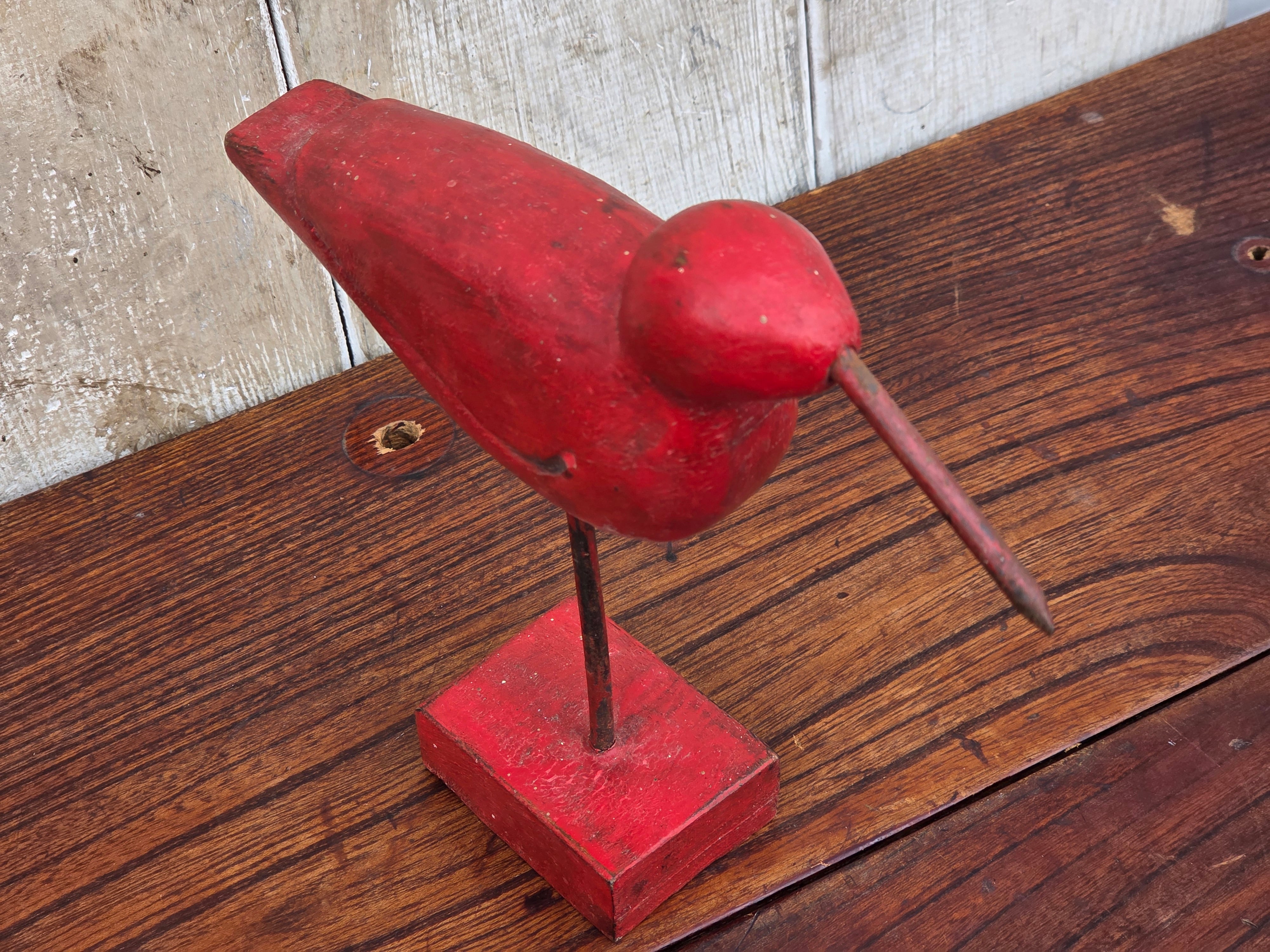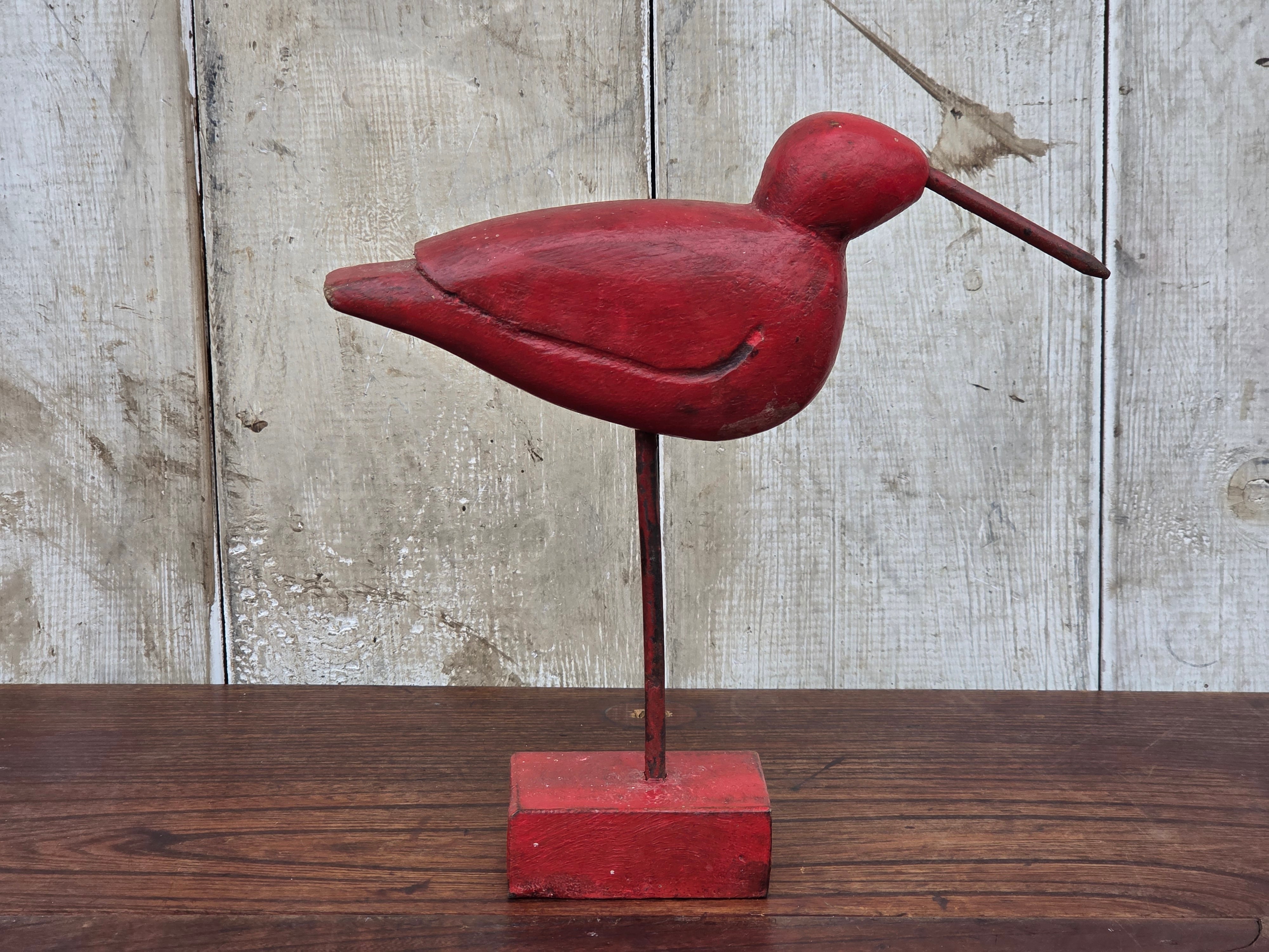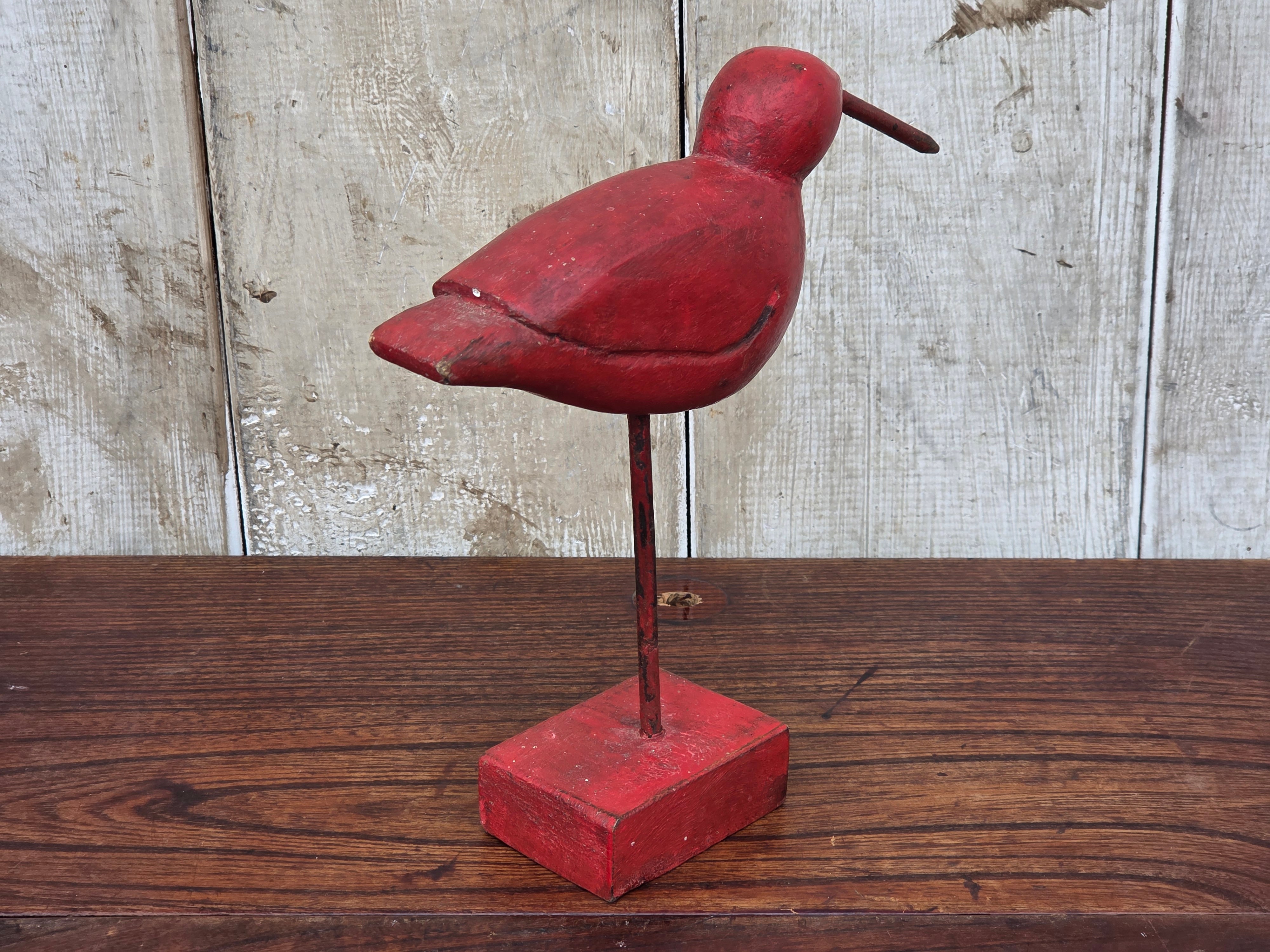 【Vintage】フランス 赤い鳥の木製オブジェ /d43