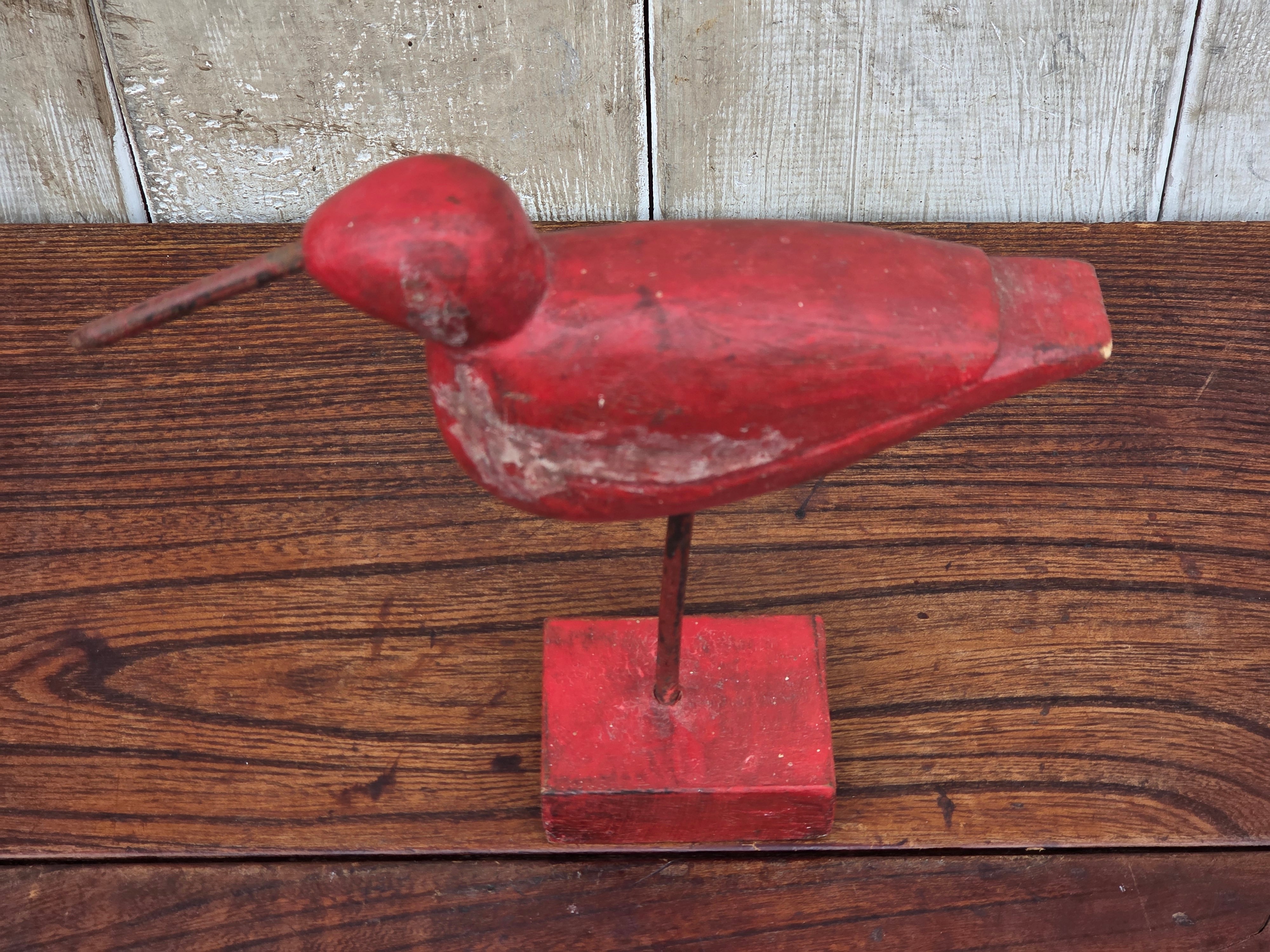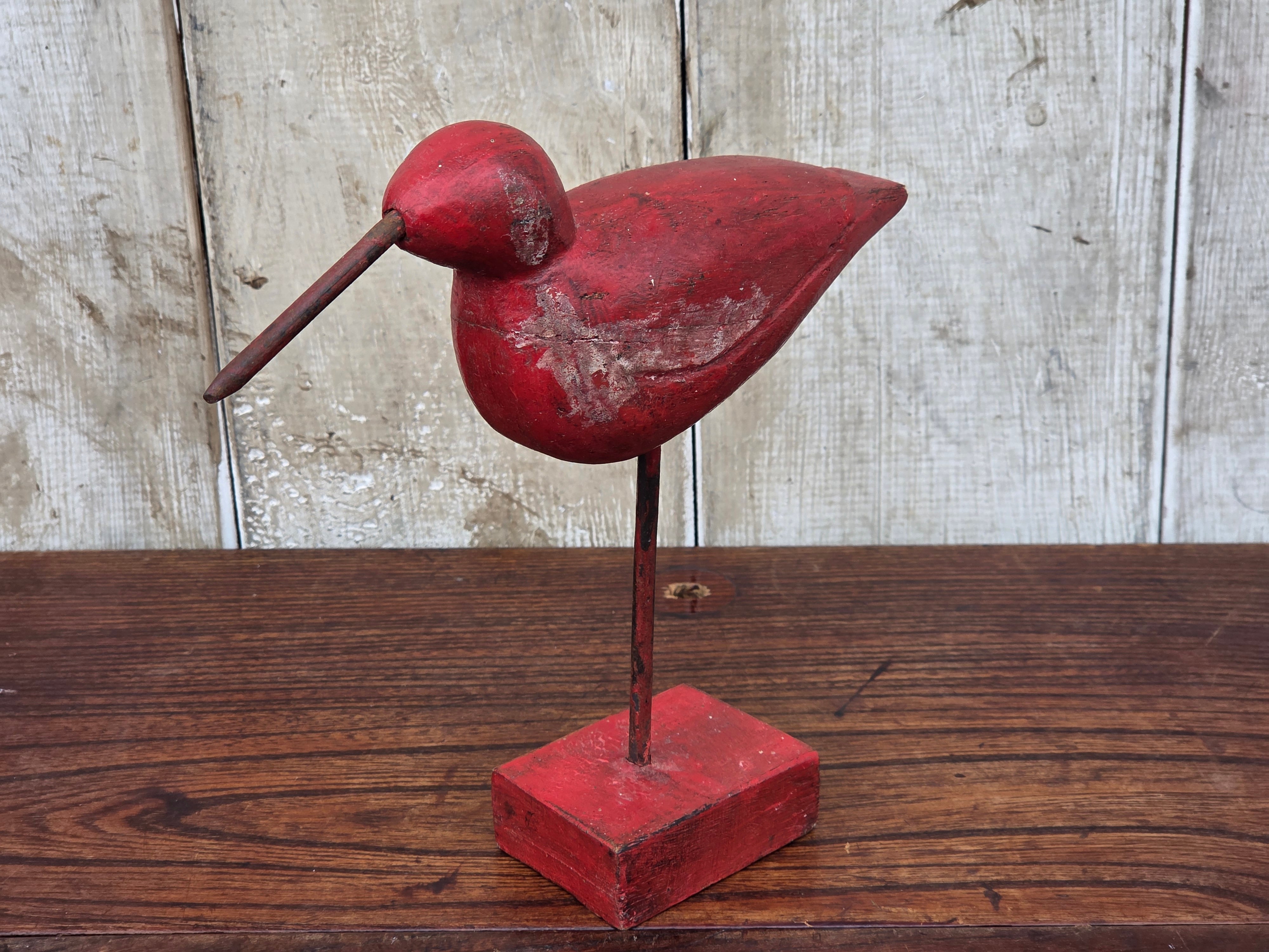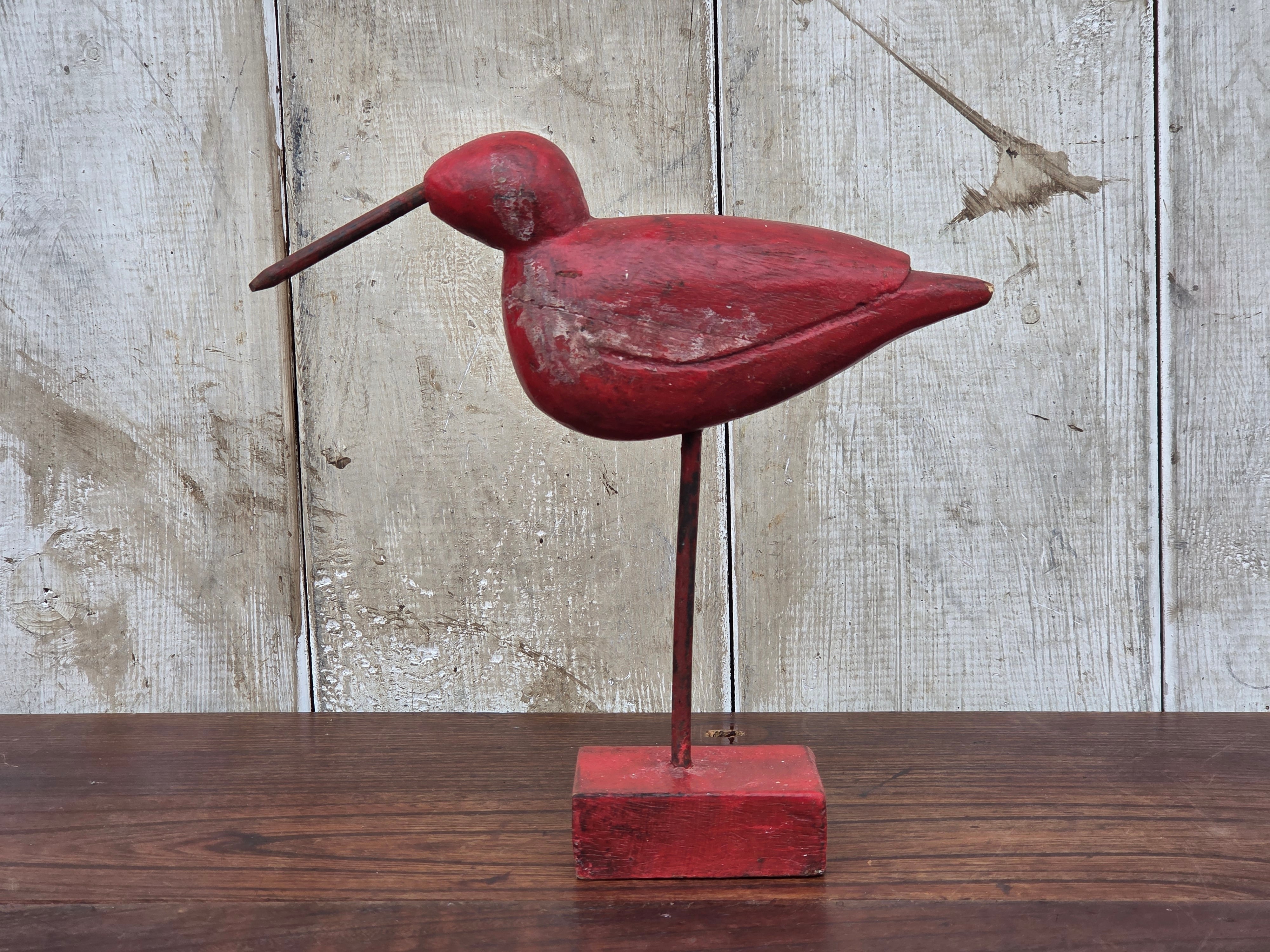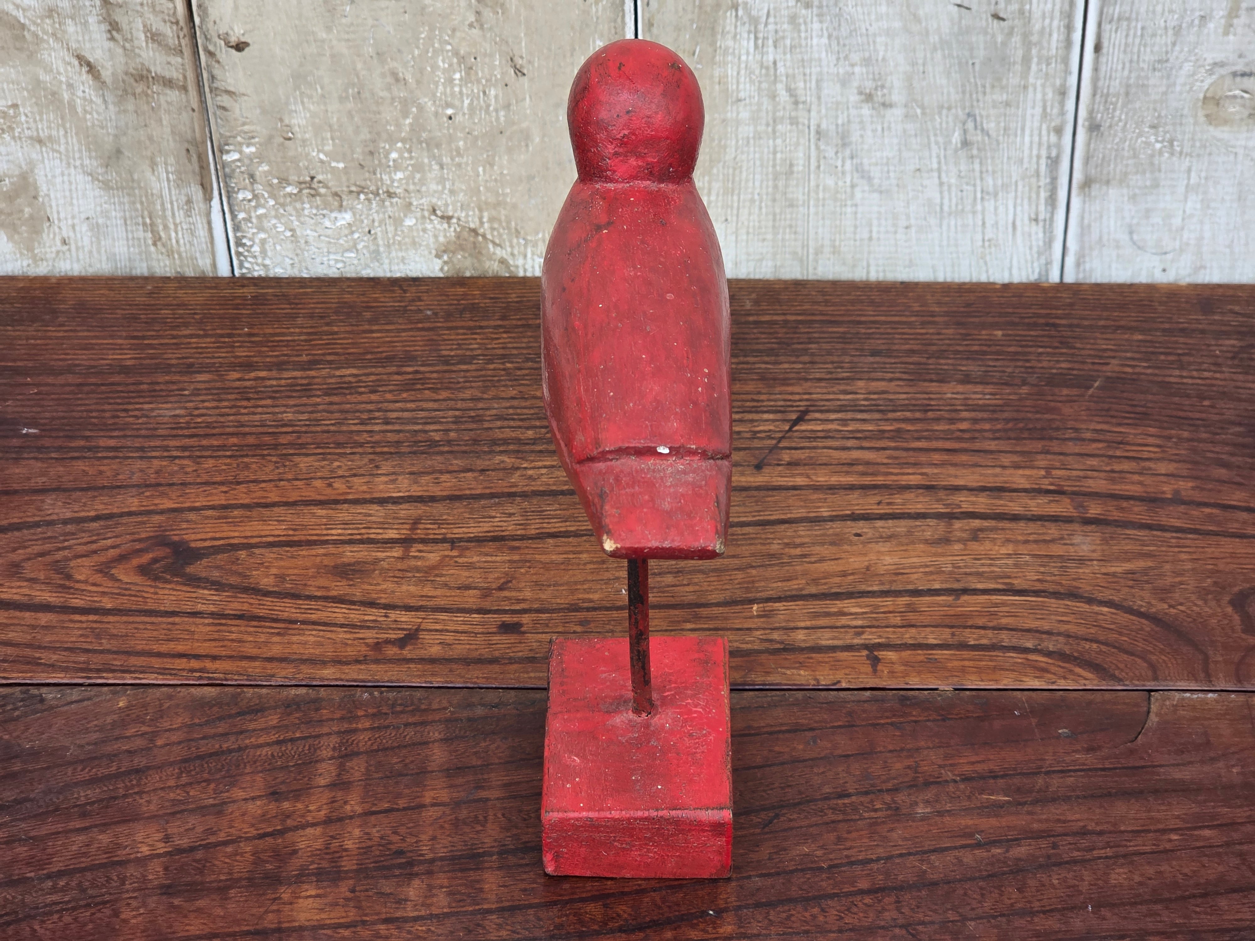 【Vintage】フランス 赤い鳥の木製オブジェ /d43