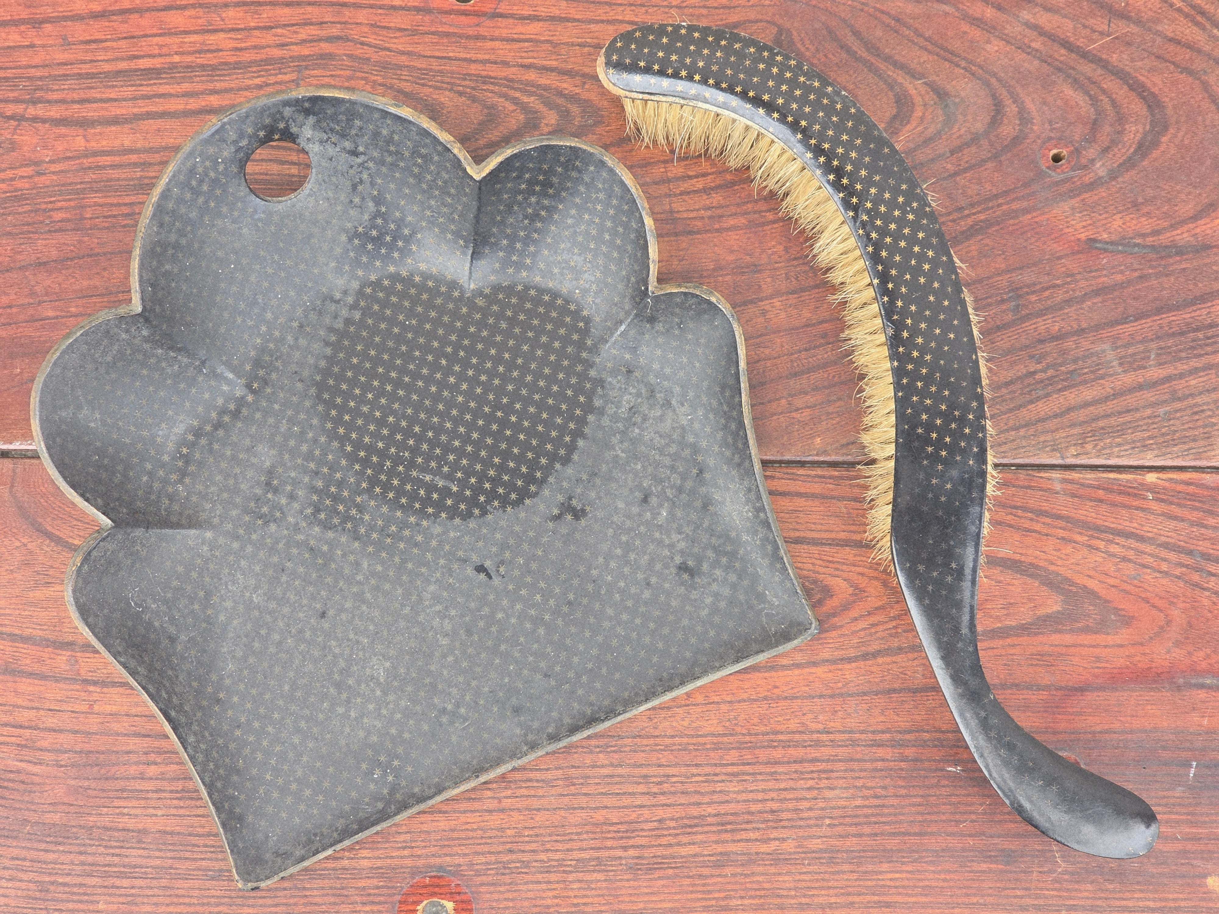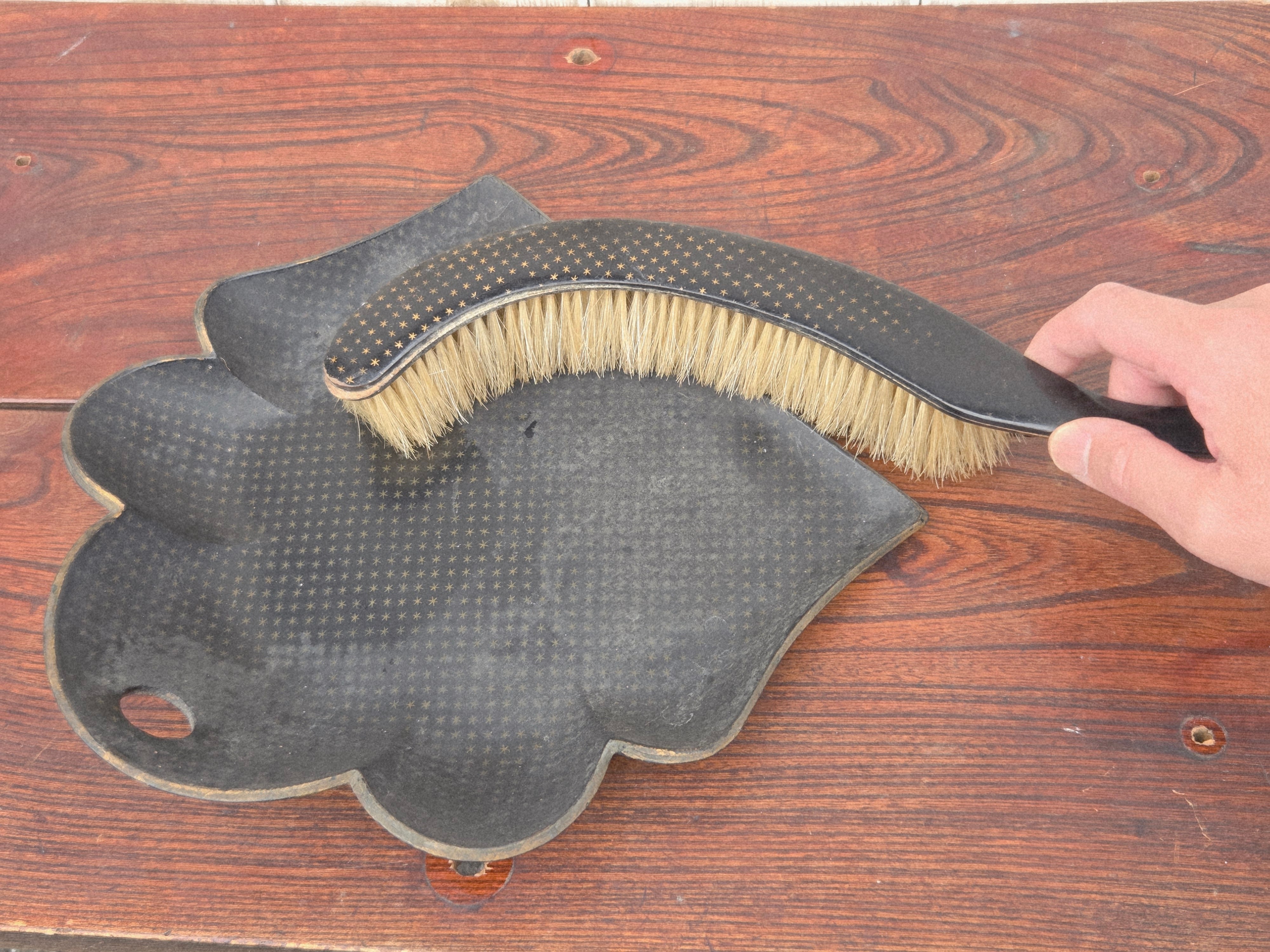 【Antique】フランス ダストパン&ブラシ パピエマシェ/d64