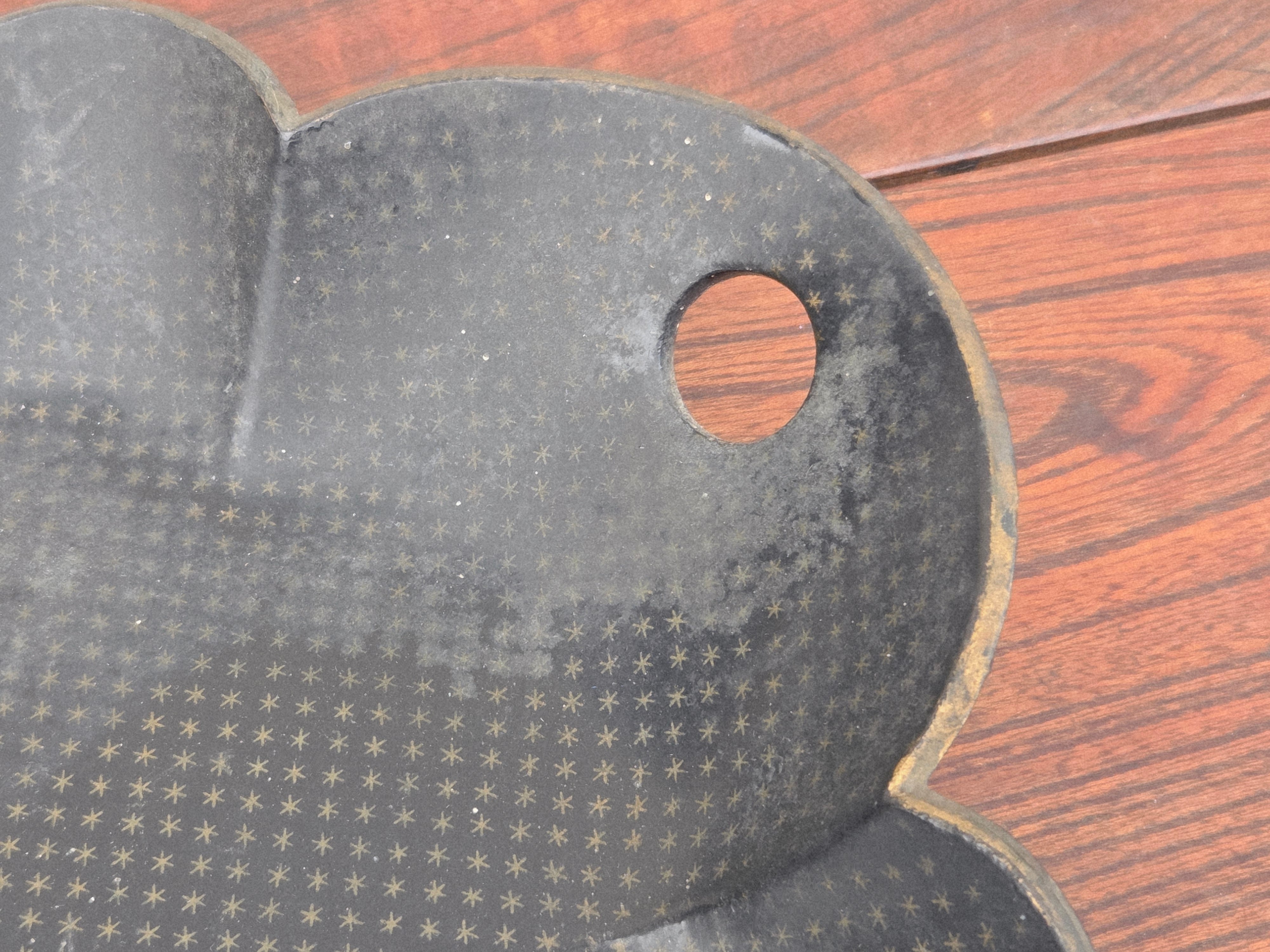 こちらのダストパンはシェルを模した立体感。漆黒調な塗りにゴールドカラーのエッジとパターン模様が施されていました。
