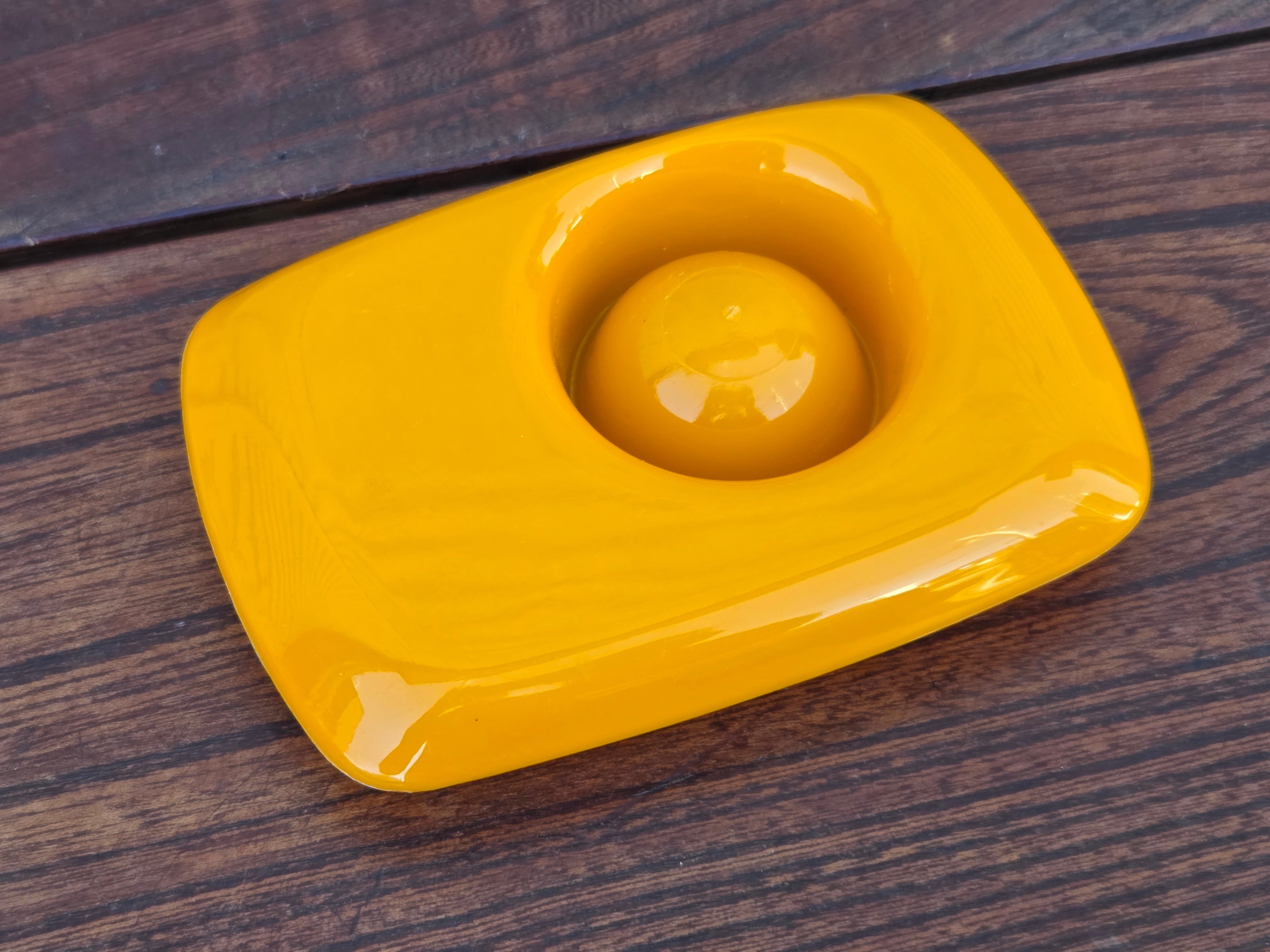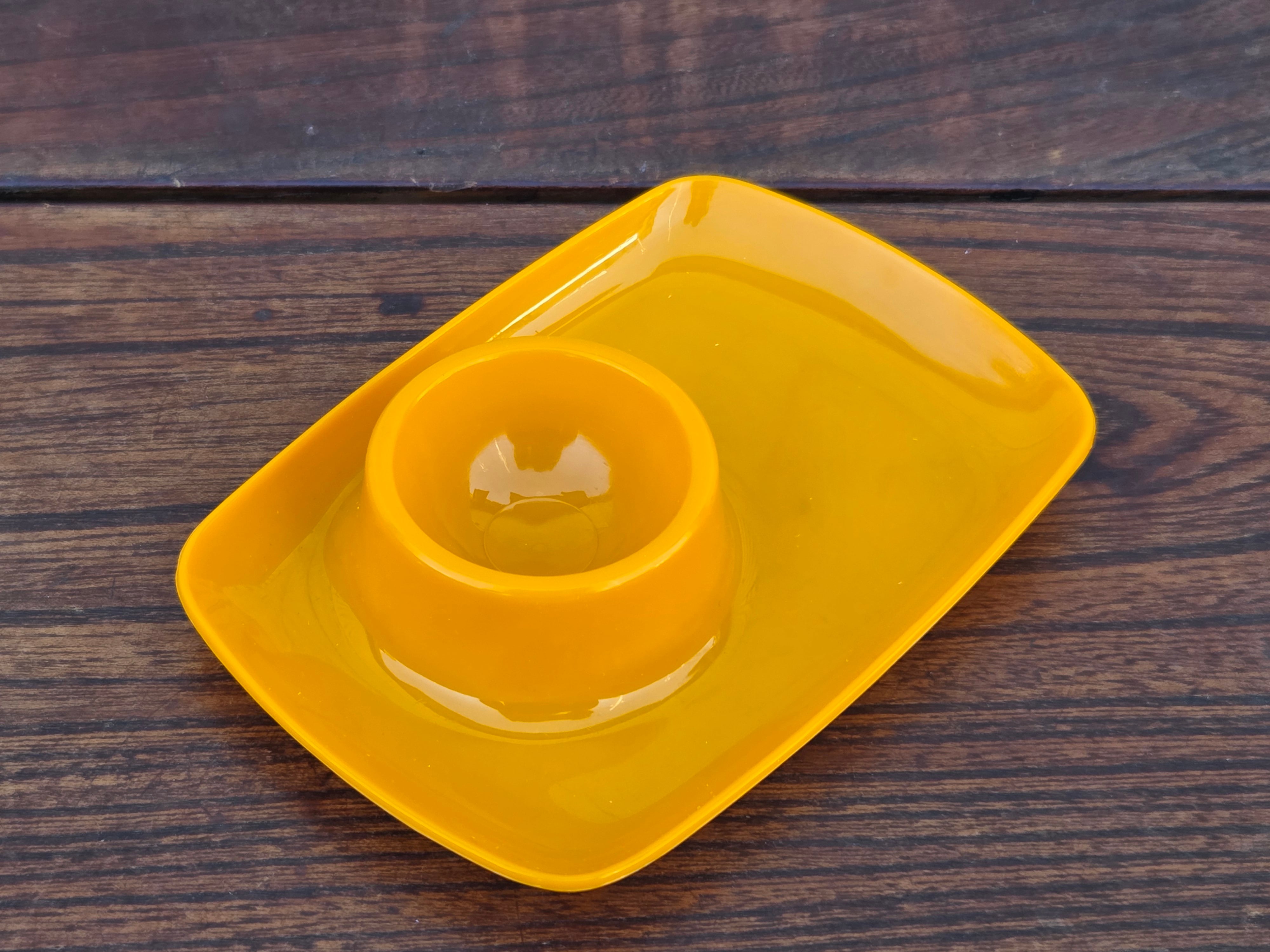 【Vintage】オランダ エッグカッププレート イエロー /f238