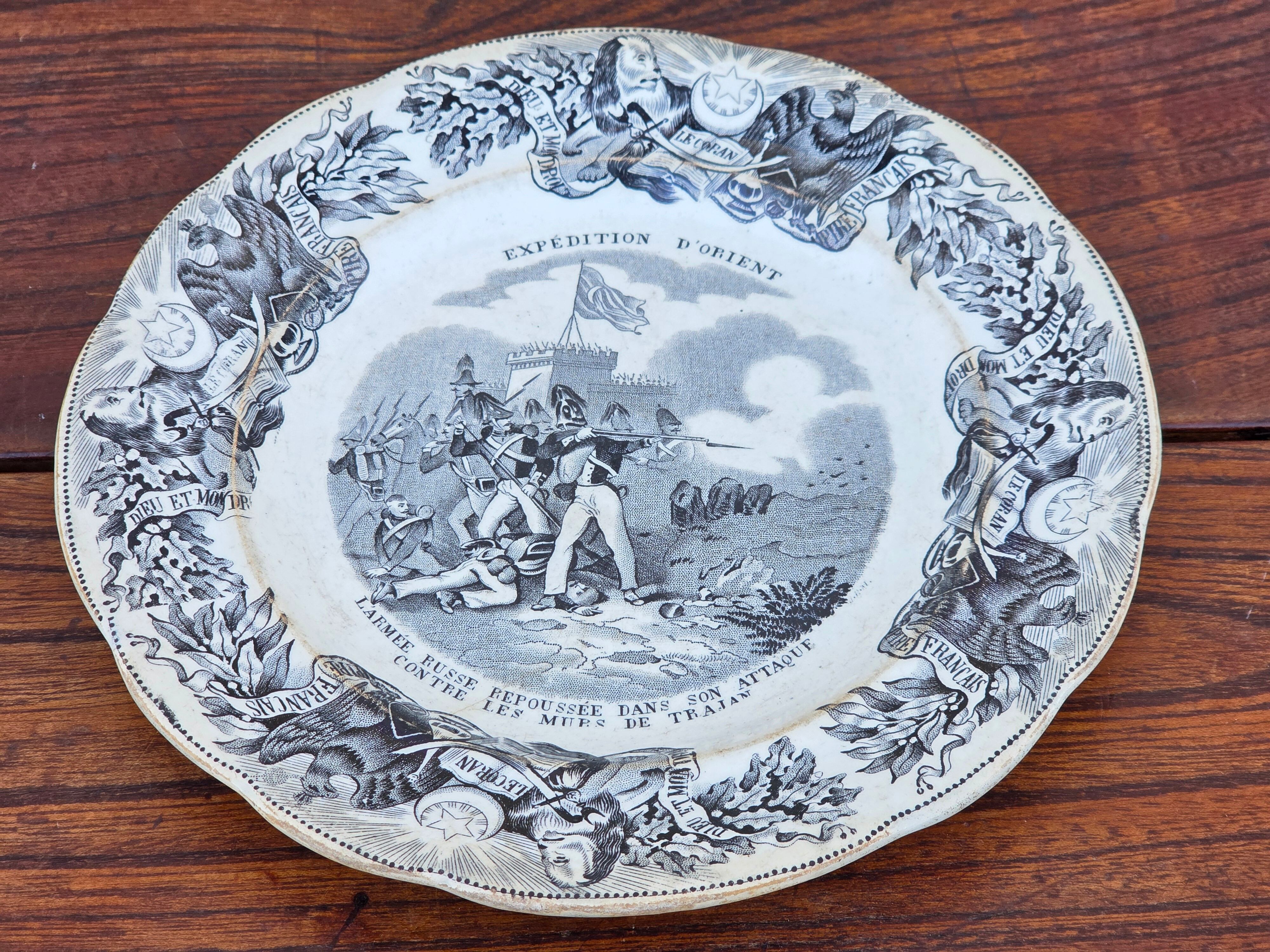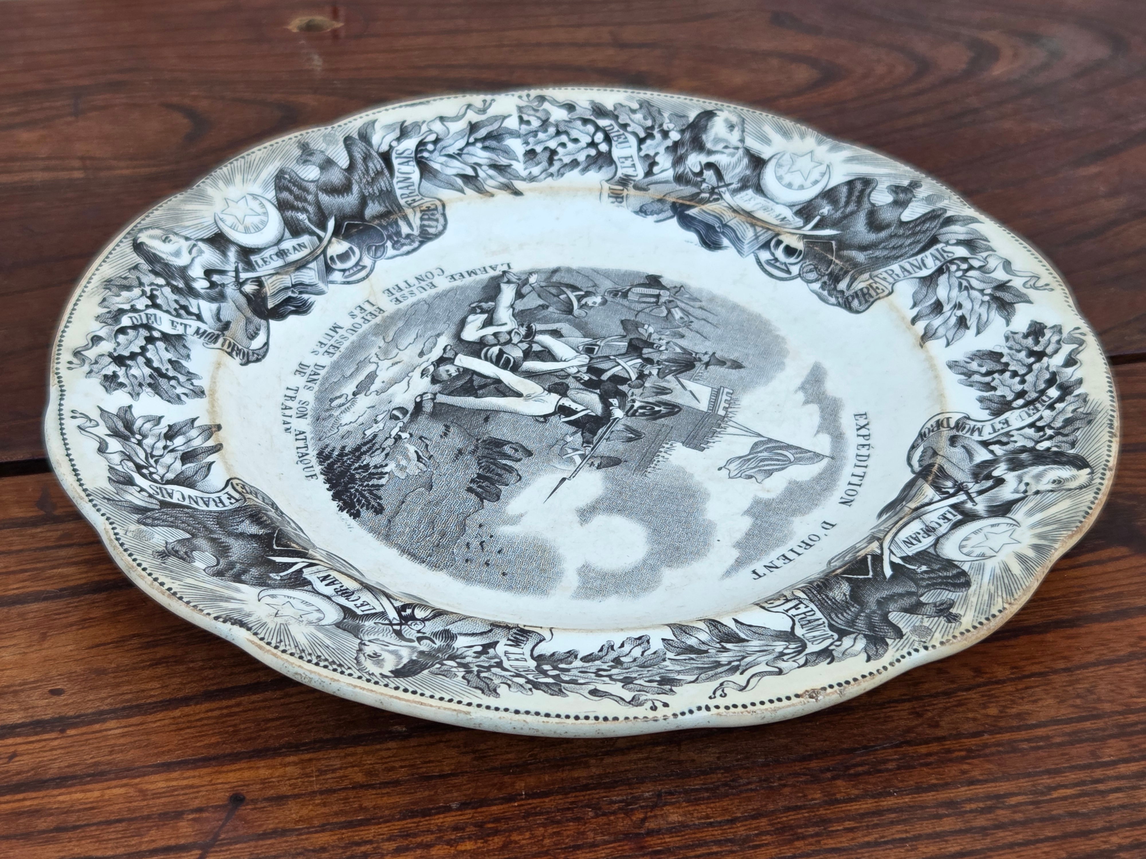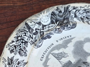 グリザイユ(モノクロ単色画)にて描かれたナポレオン画の平皿。