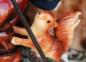 リスは一緒に遊びたいのでしょうか。それともプレゼントをねだっているのでしょうか。少女の顔を覗いています。