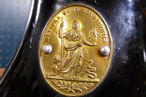 製織・工芸などを司るローマ神話の女神 "Minerva" のプレートがミシンフロントにあしらわれいます。