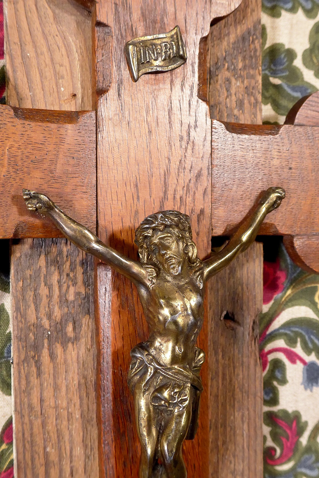 木製の十字架。像とプレートはメタル製です。