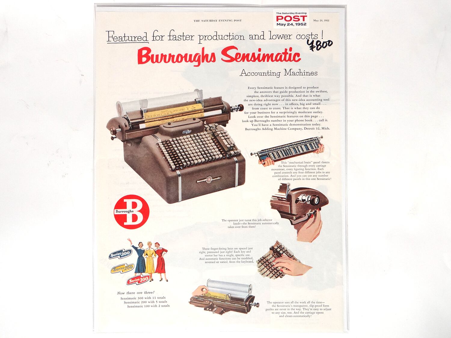 【Vintage】Burroughs 雑誌切り抜き 1952年 The Saturday Evening Post /C023-36