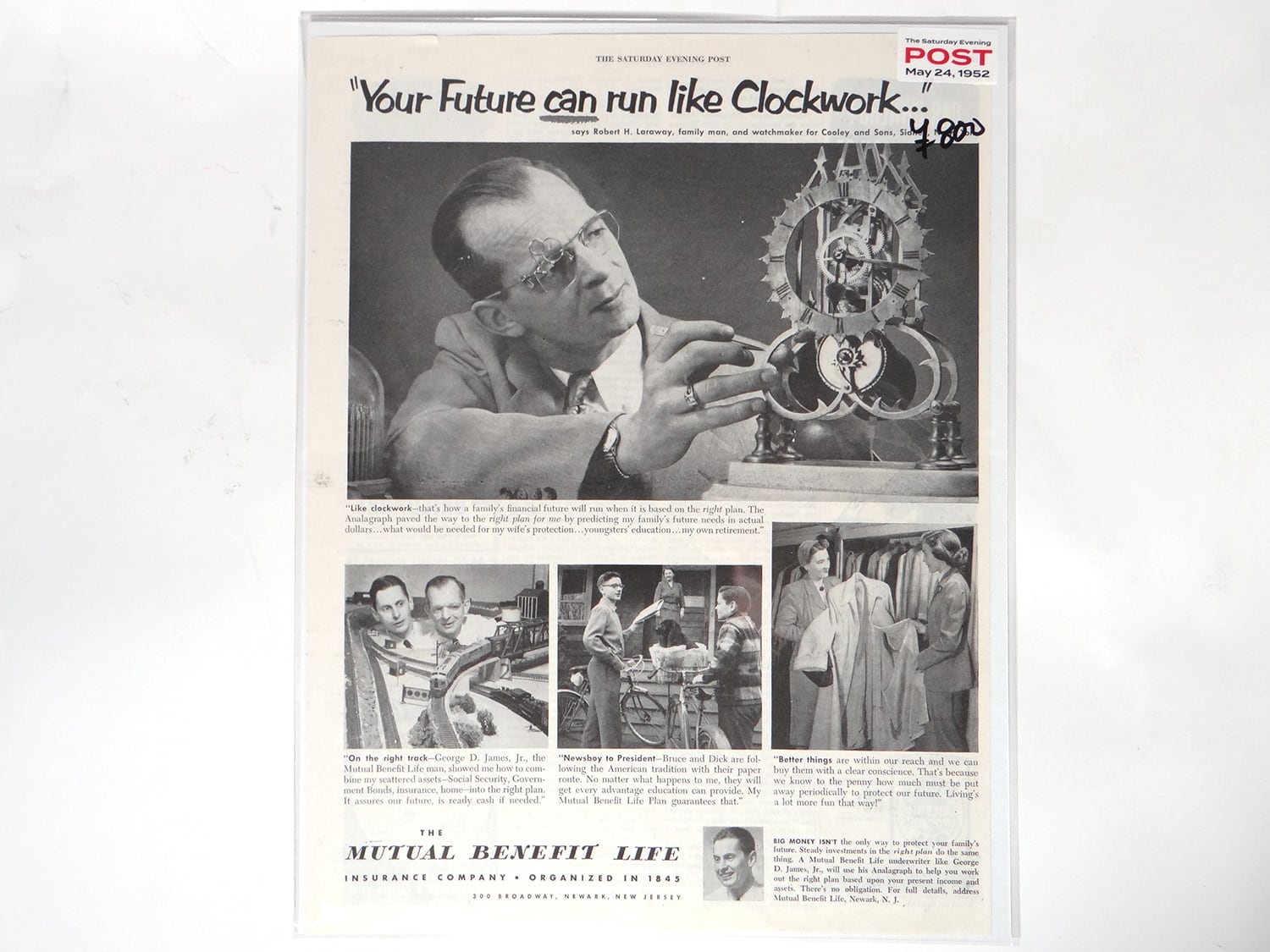 【Vintage】THE MUTUAL BENEFIT LIFE 雑誌切り抜き 1952年 The Saturday Evening Post /C023-35