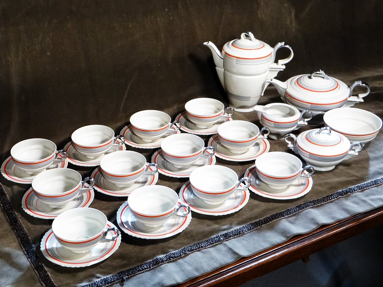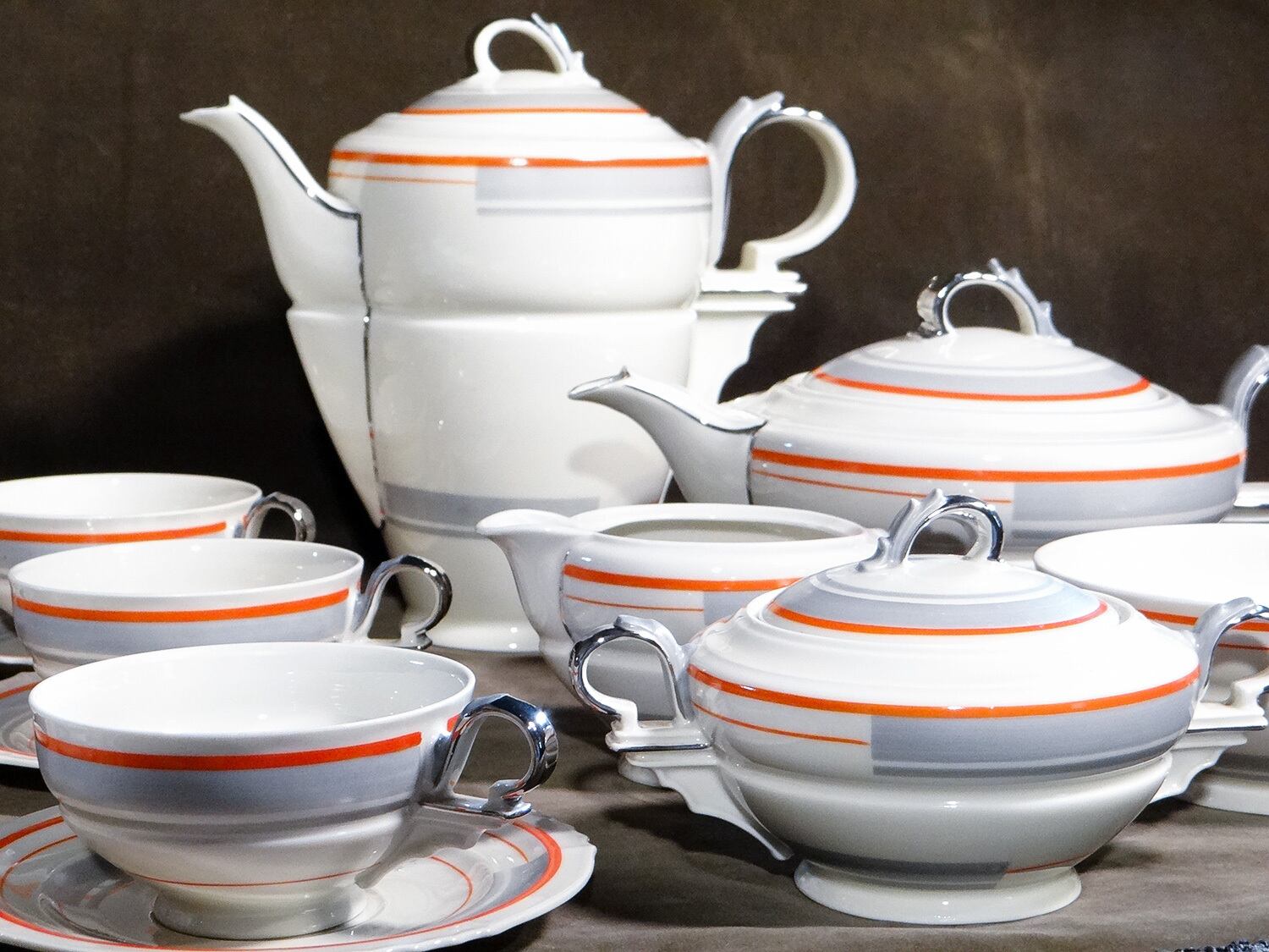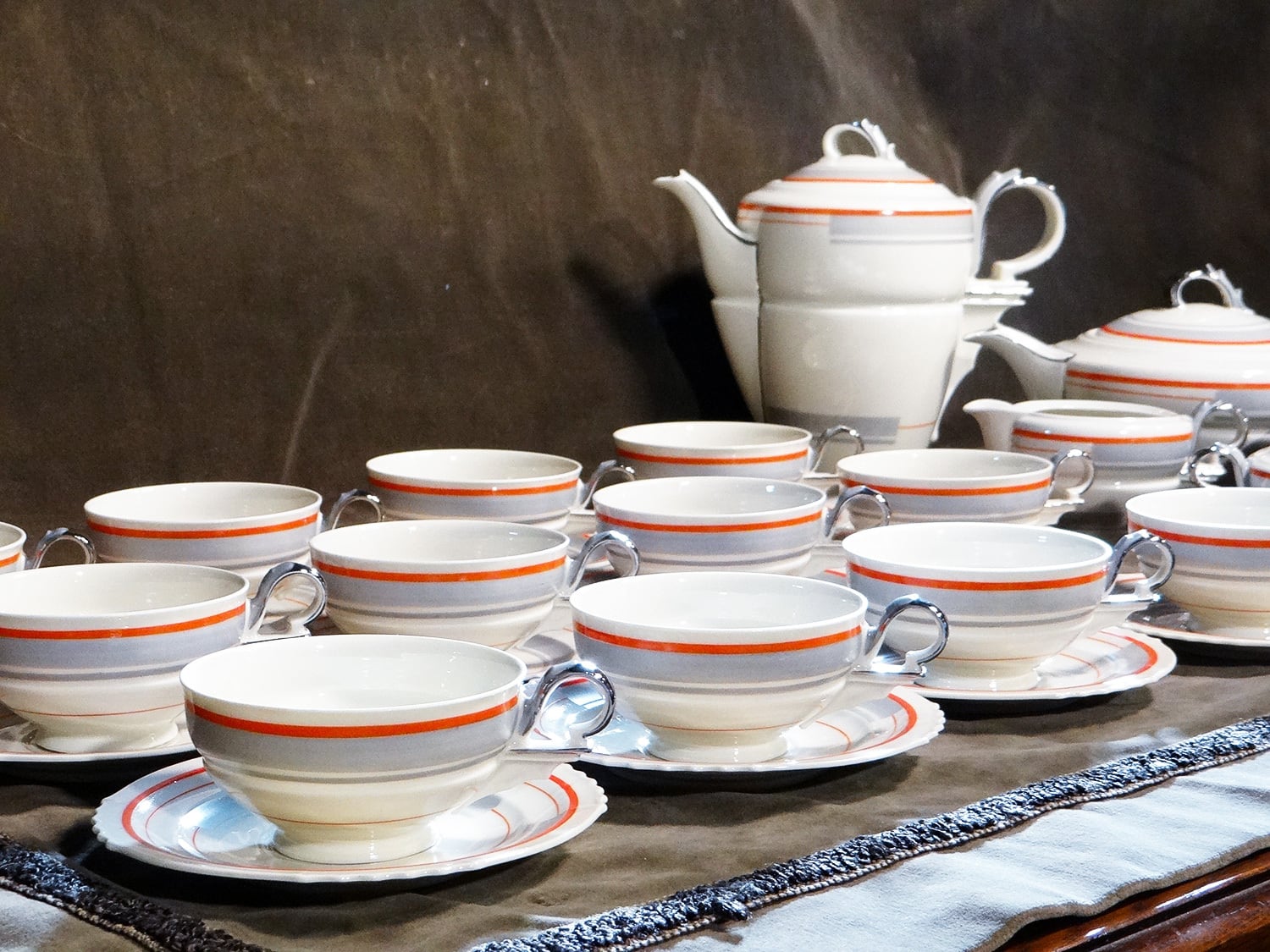 セット内容:ポット×1、シュガーポット×1、ミルクポット×1、ボウル×1、カップ&ソーサー×12客の大コレクションです。