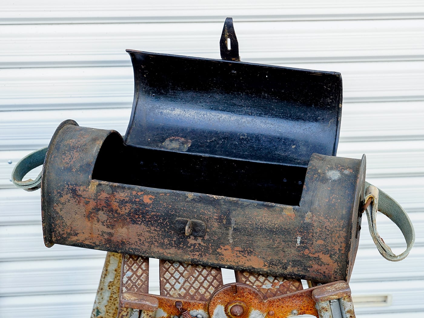 レザーショルダーベルトもいい雰囲気。本体全体に錆や腐食がみられ良い雰囲気に時代がついています。